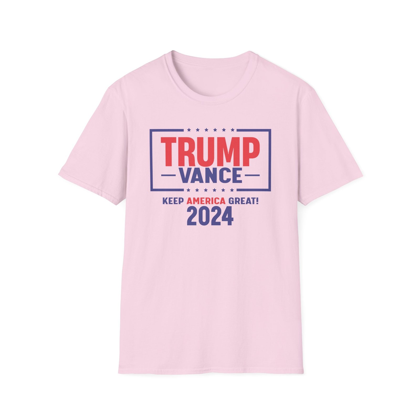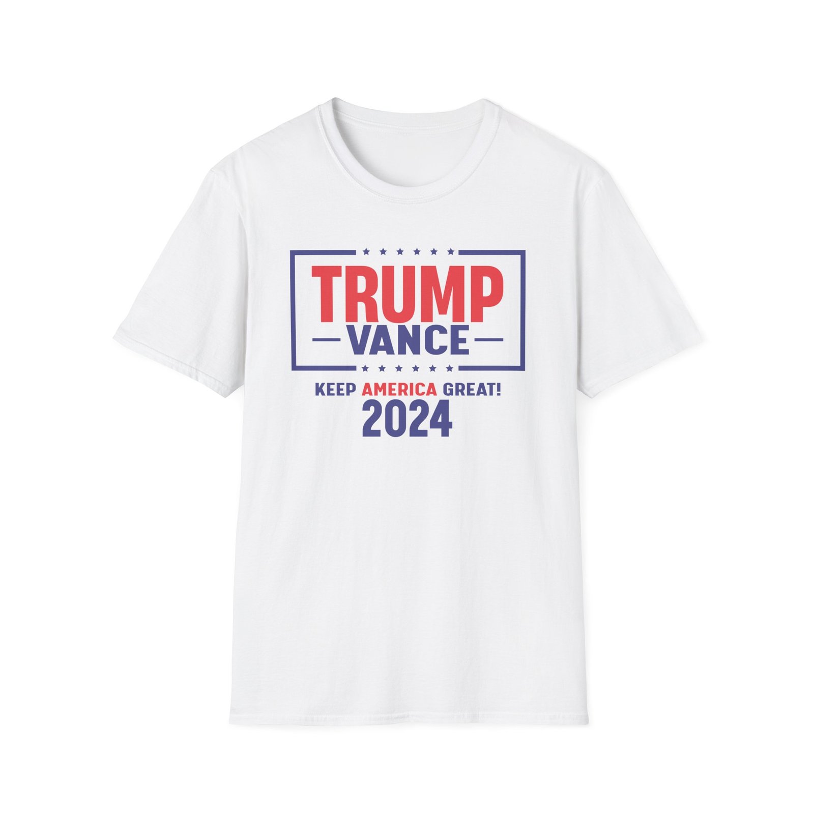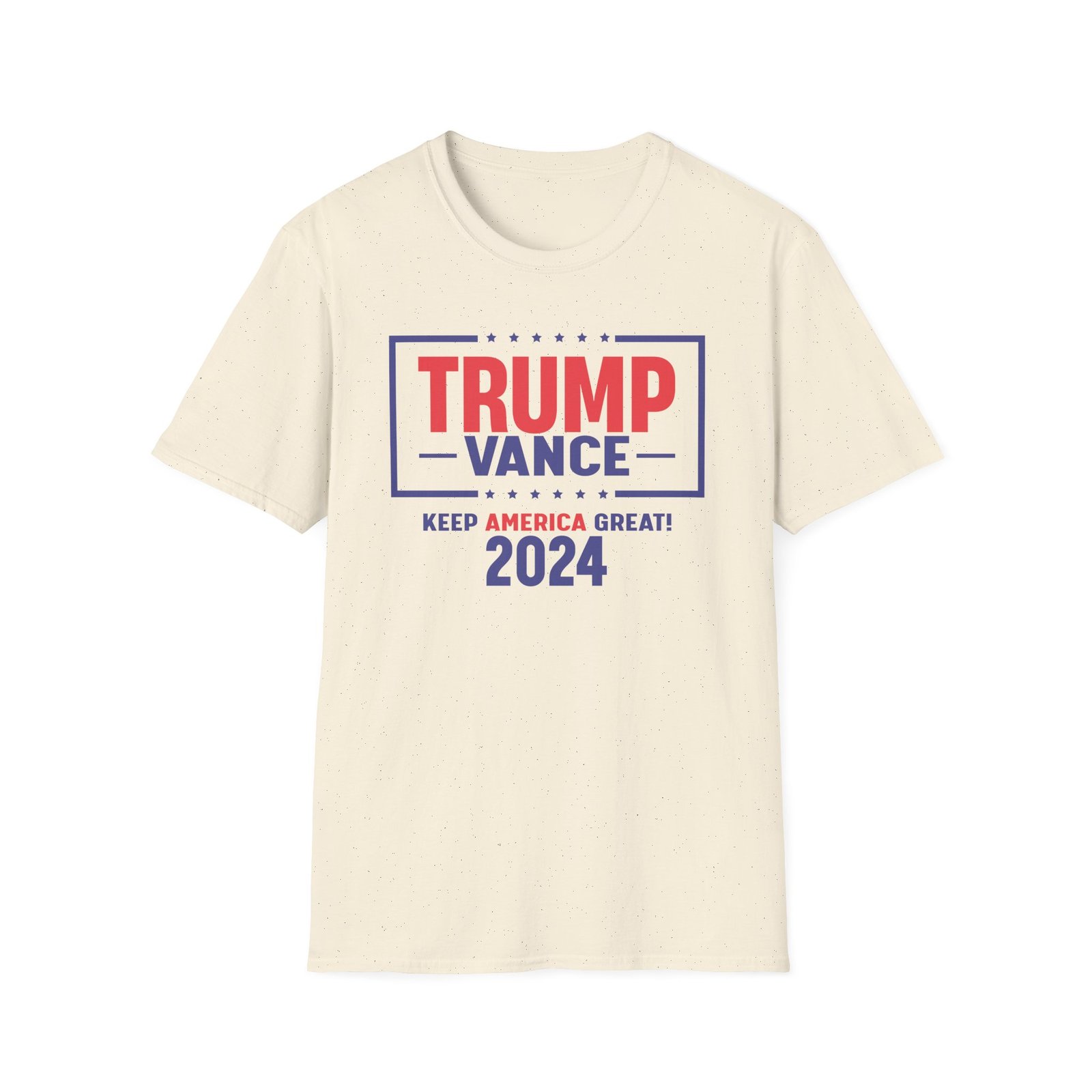 The Trump Vance 2024 Keep America Great unisex soft-style t-shirt puts a new spin on casual comfort. Made from very soft materials, this tee is 100% cotton for solid colors. Heather colors and sports grey include polyester. The shoulders have twill tape for improved durability. There are no side seams. The collar is made with ribbed knitting to prevent curling damage.