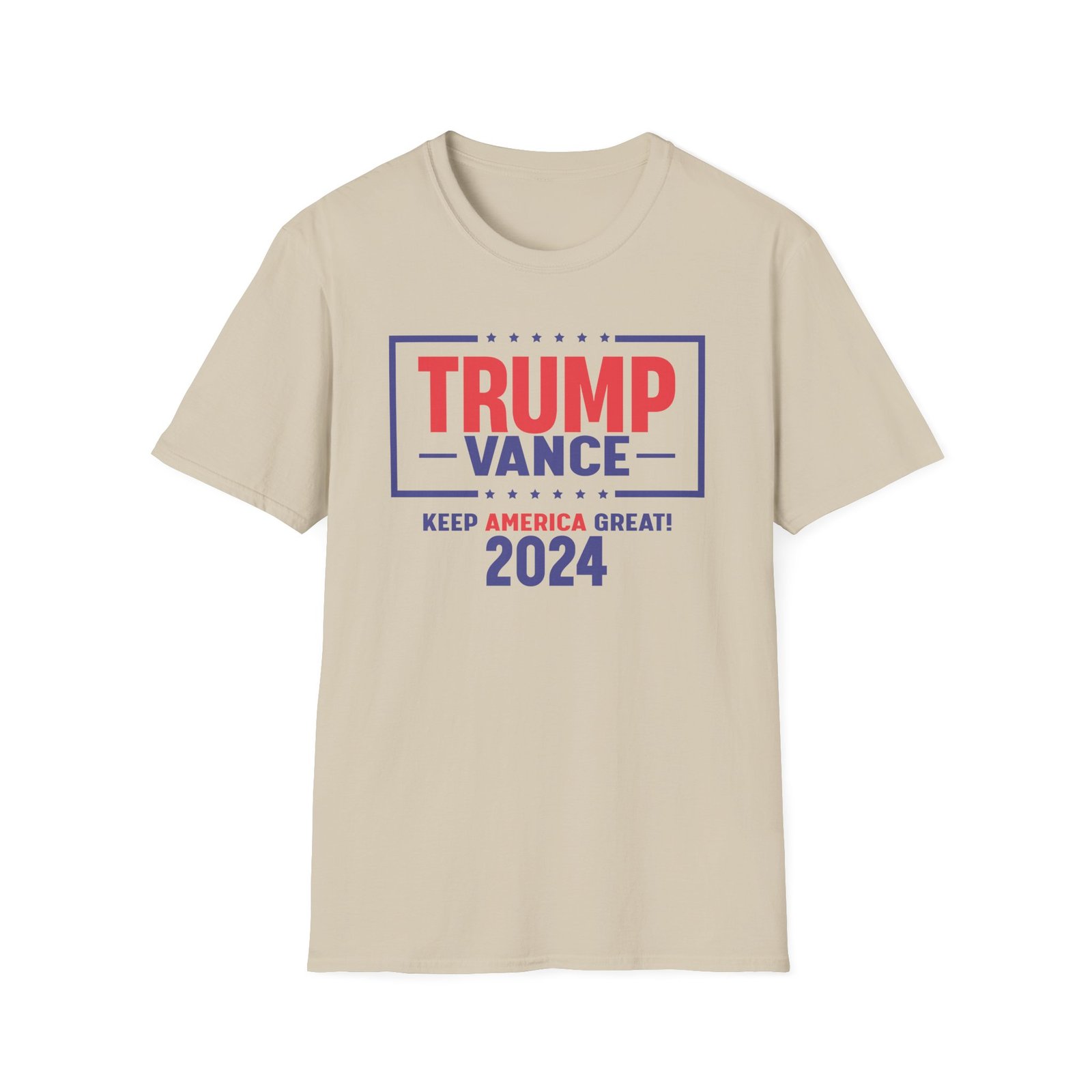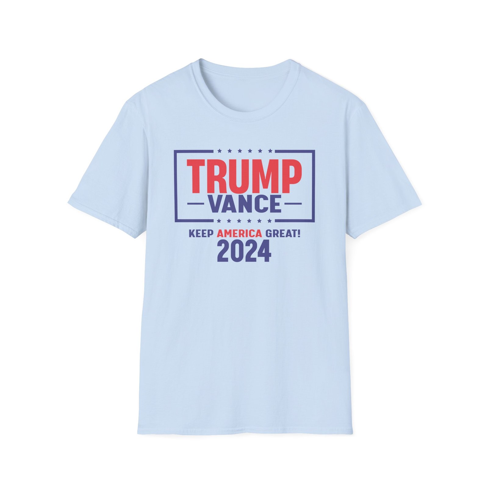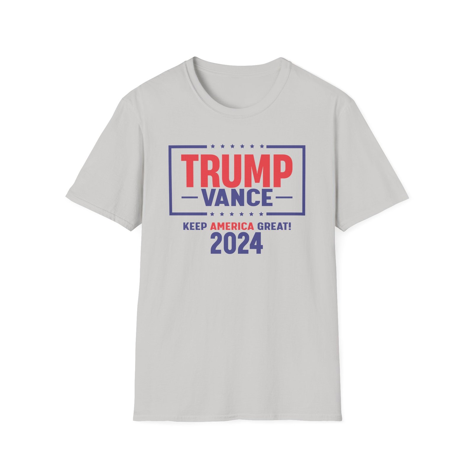 The Trump Vance 2024 Keep America Great unisex soft-style t-shirt puts a new spin on casual comfort. Made from very soft materials, this tee is 100% cotton for solid colors. Heather colors and sports grey include polyester. The shoulders have twill tape for improved durability. There are no side seams. The collar is made with ribbed knitting to prevent curling damage.