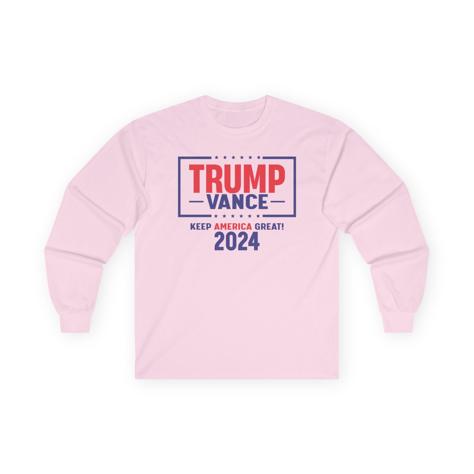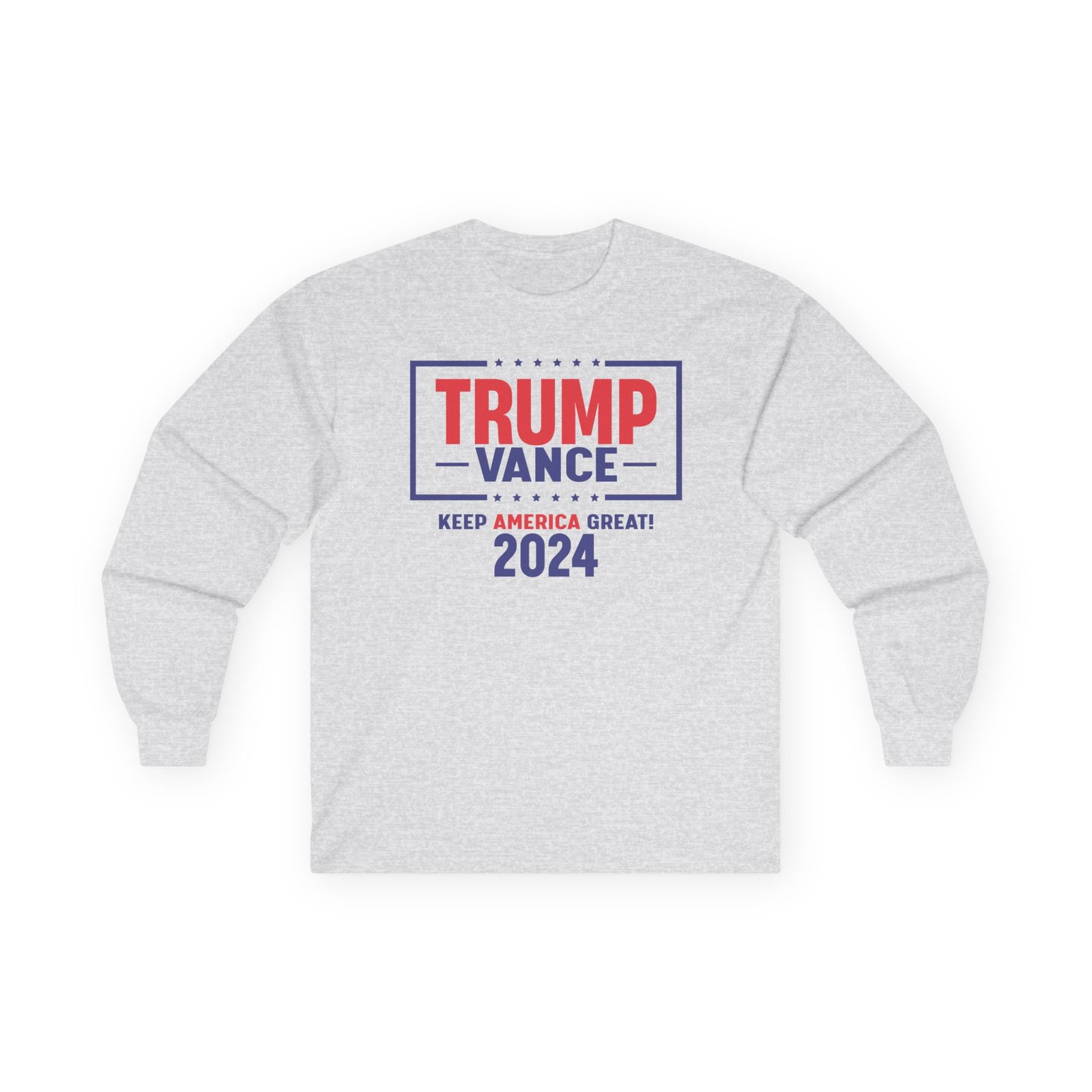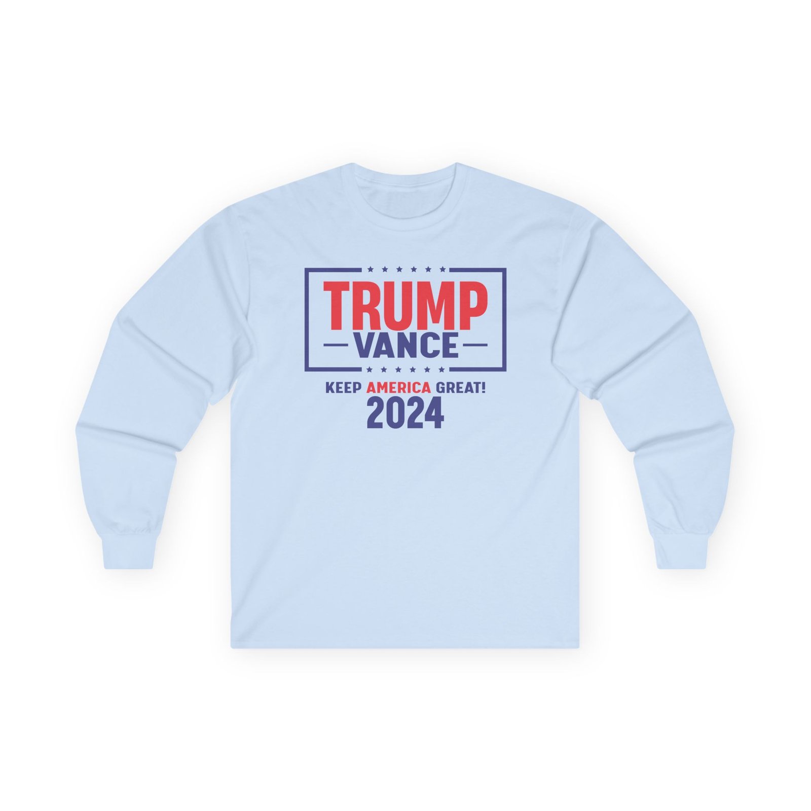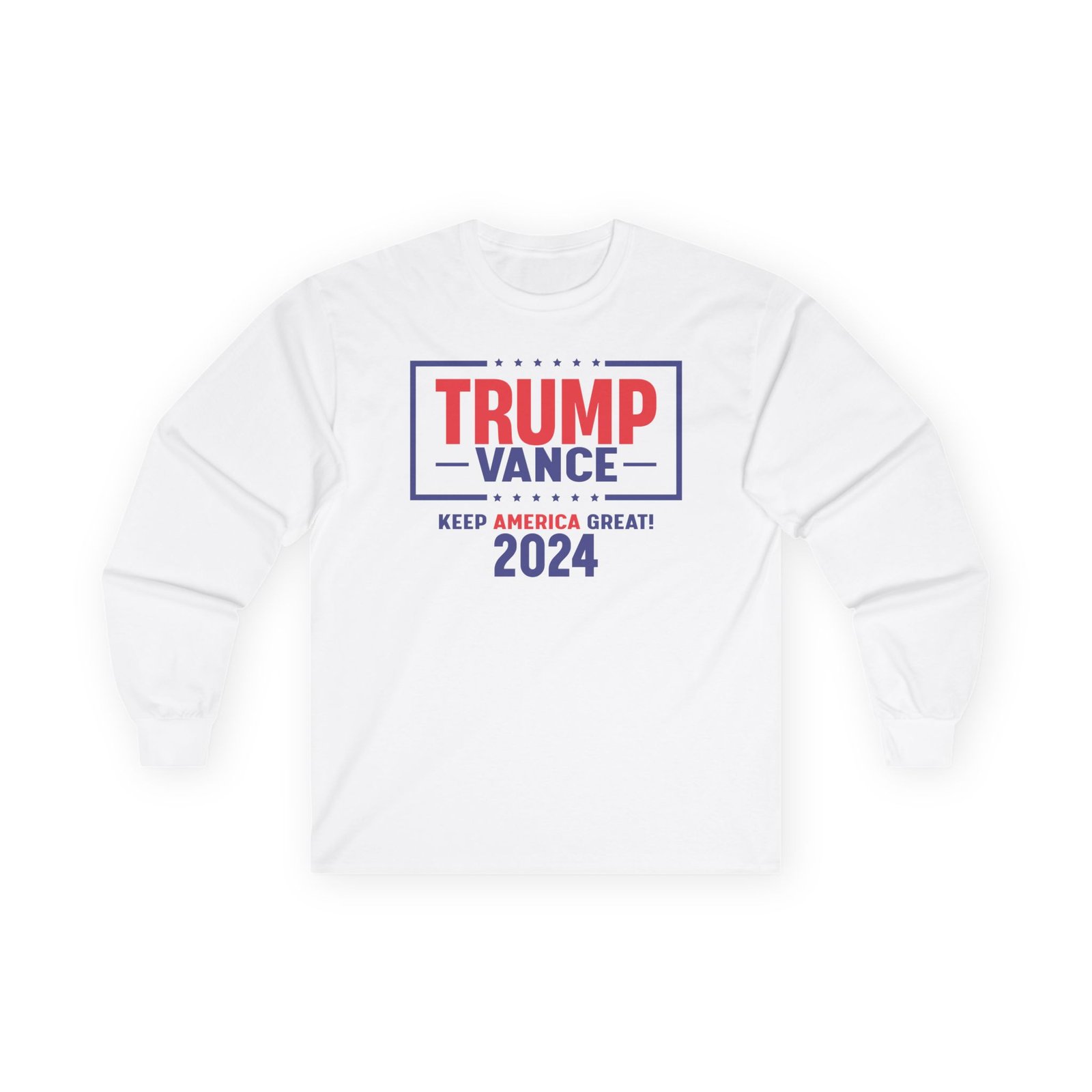 A bit more formal than a standard-issue t-shirt, the Trump Vance 2024 Keep America Great ultra cotton long sleeve tee is a clear comfort winner. The sleeves also act as a nice frame. There are no side seams. The shoulders are taped for improved durability. This makes for a good fitting around the shoulders and neck. The cotton used for these shirts is environmentally friendly.