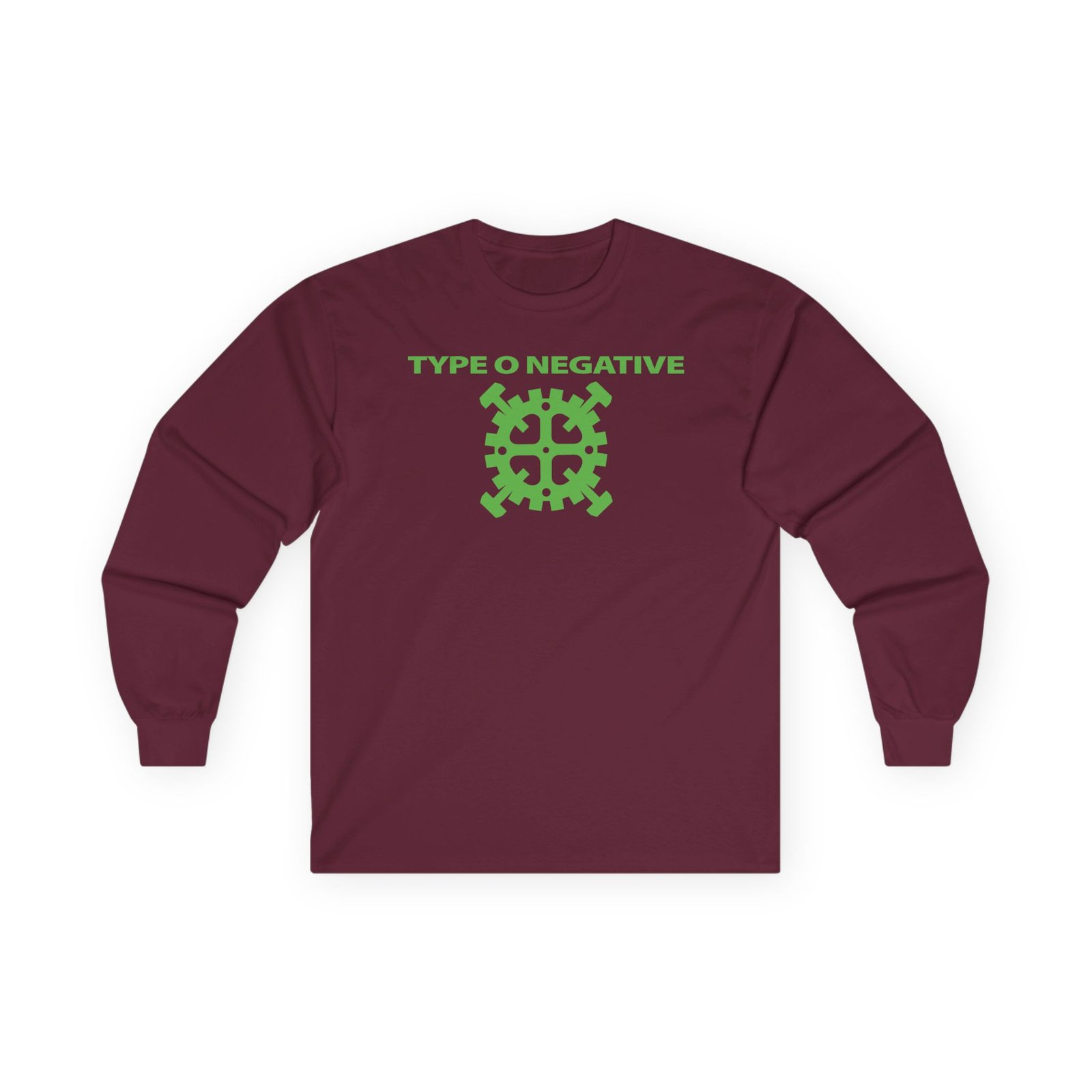 A bit more formal than a standard-issue t-shirt, the Type O Negative Gear ultra cotton long sleeve tee is a clear comfort winner. The sleeves also act as a nice frame. There are no side seams. The shoulders are taped for improved durability. This makes for a good fitting around the shoulders and neck. The cotton used for these shirts is environmentally friendly.