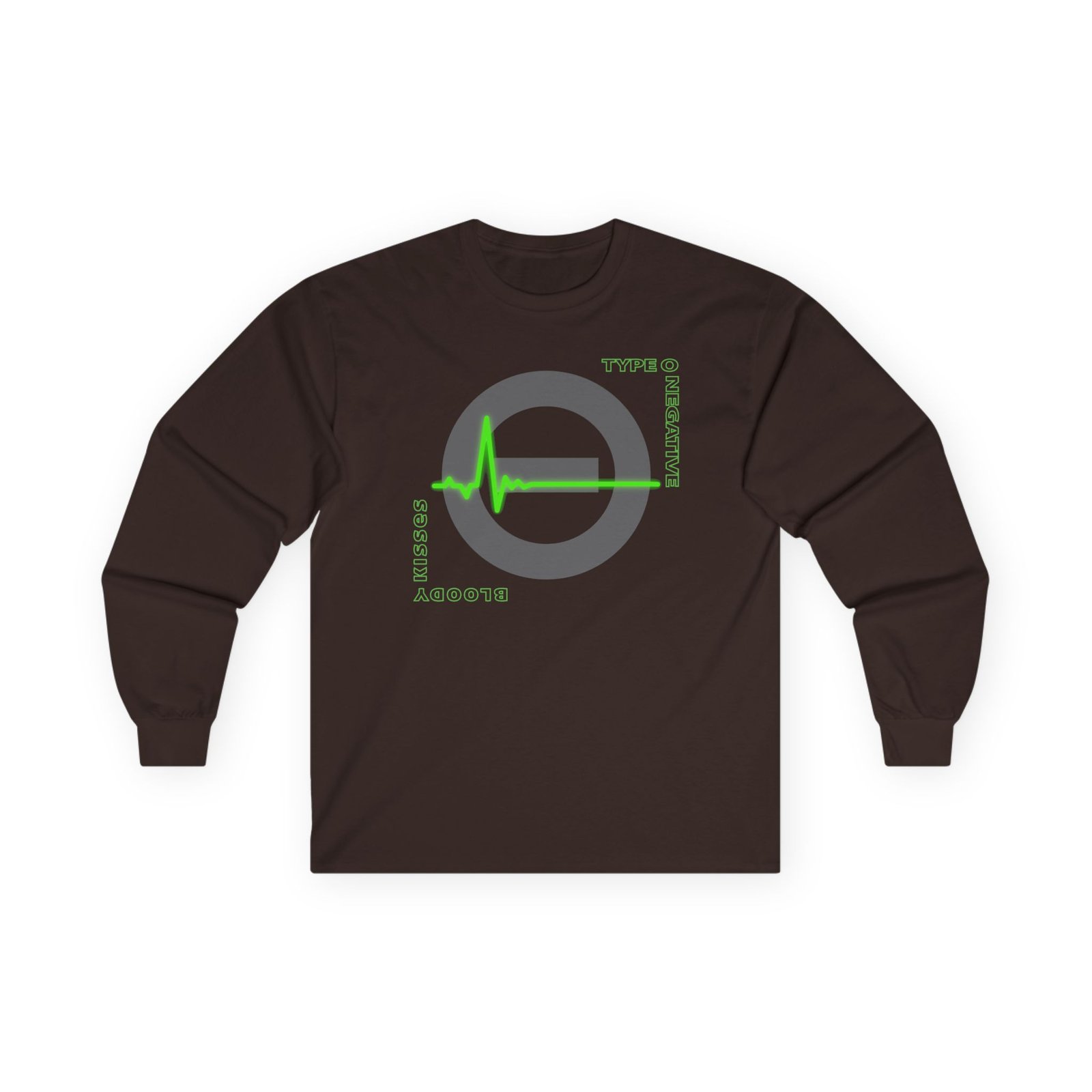 A bit more formal than a standard-issue t-shirt, the Type O Negative Life is Killing Me ultra cotton long sleeve tee is a clear comfort winner. The sleeves also act as a nice frame. There are no side seams. The shoulders are taped for improved durability. This makes for a good fitting around the shoulders and neck. The cotton used for these shirts is environmentally friendly.