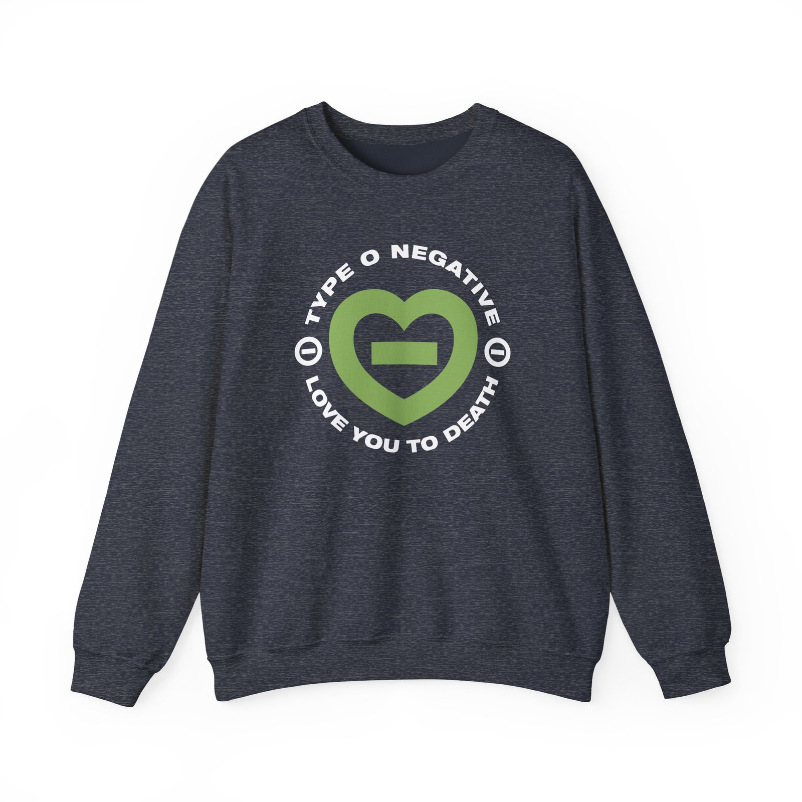 Ideal for any situation, a Type O Negative Love You to Death unisex heavy blend crewneck sweatshirt is pure comfort. These garments are made from polyester and cotton. This combination helps designs come out looking fresh and beautiful. The collar is ribbed knit, so it retains its shape even after washing. There are no itchy side seams on these sweaters.