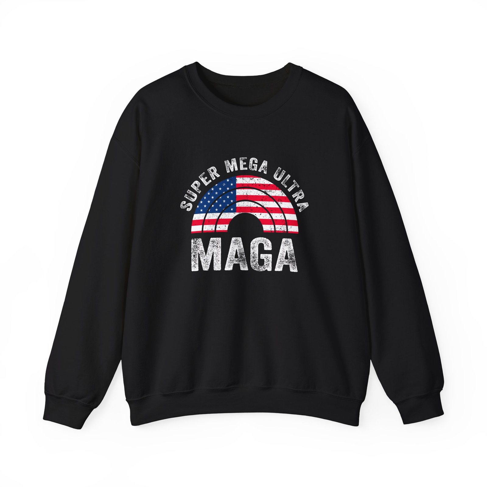 Ideal for any situation, a Ultra Maga Super unisex heavy blend crewneck sweatshirt is pure comfort. These garments are made from polyester and cotton. This combination helps designs come out looking fresh and beautiful. The collar is ribbed knit, so it retains its shape even after washing. There are no itchy side seams on these sweaters.