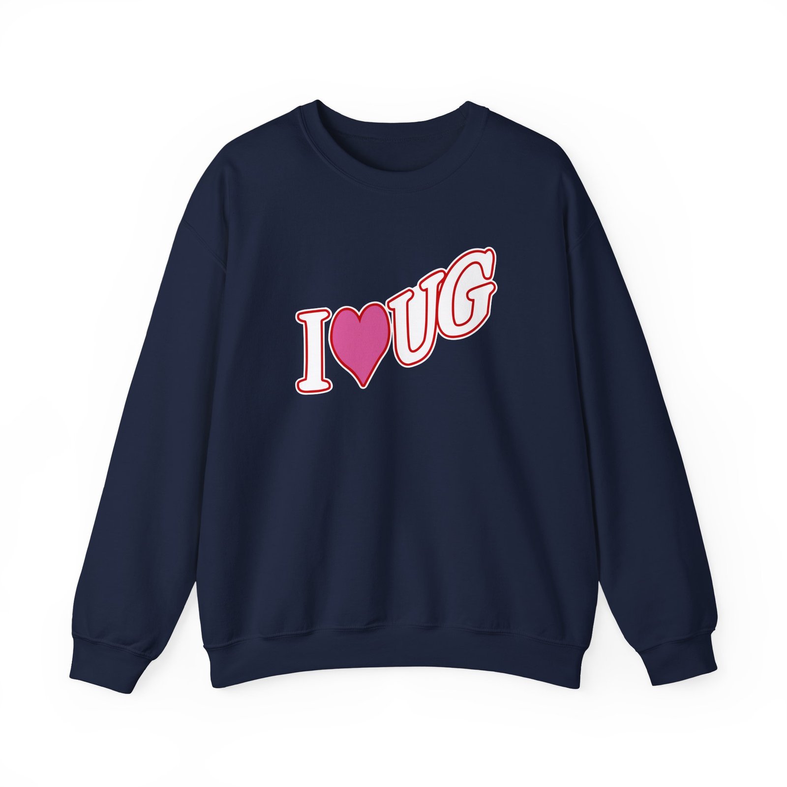 Ideal for any situation, a Undergrunn I Love Ug unisex heavy blend crewneck sweatshirt is pure comfort. These garments are made from polyester and cotton. This combination helps designs come out looking fresh and beautiful. The collar is ribbed knit, so it retains its shape even after washing. There are no itchy side seams on these sweaters.