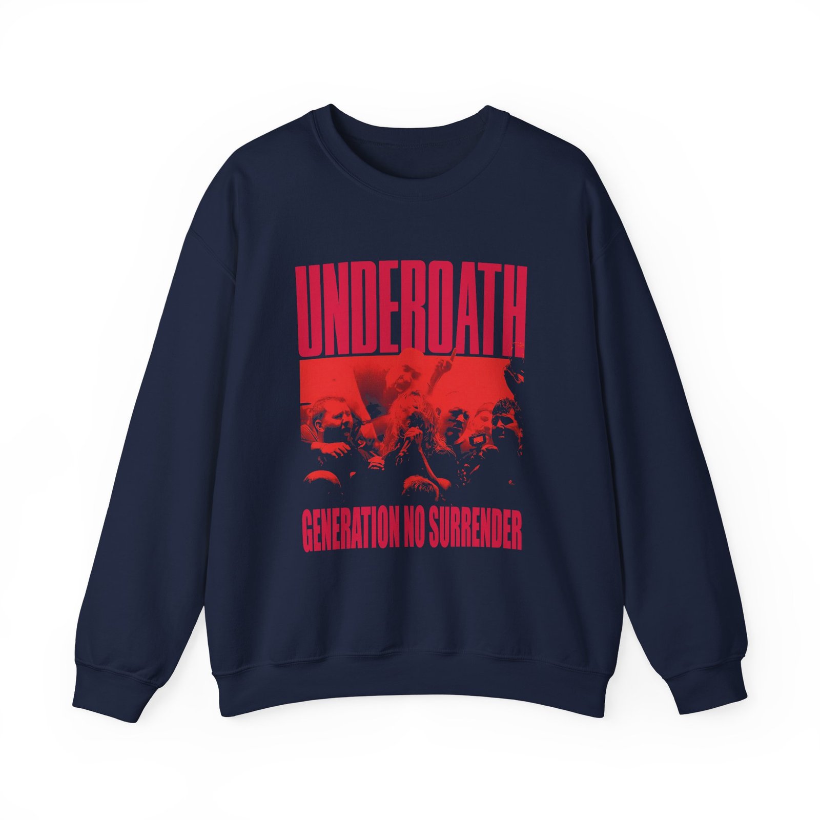 Ideal for any situation, a Underoath Generation unisex heavy blend crewneck sweatshirt is pure comfort. These garments are made from polyester and cotton. This combination helps designs come out looking fresh and beautiful. The collar is ribbed knit, so it retains its shape even after washing. There are no itchy side seams on these sweaters.
