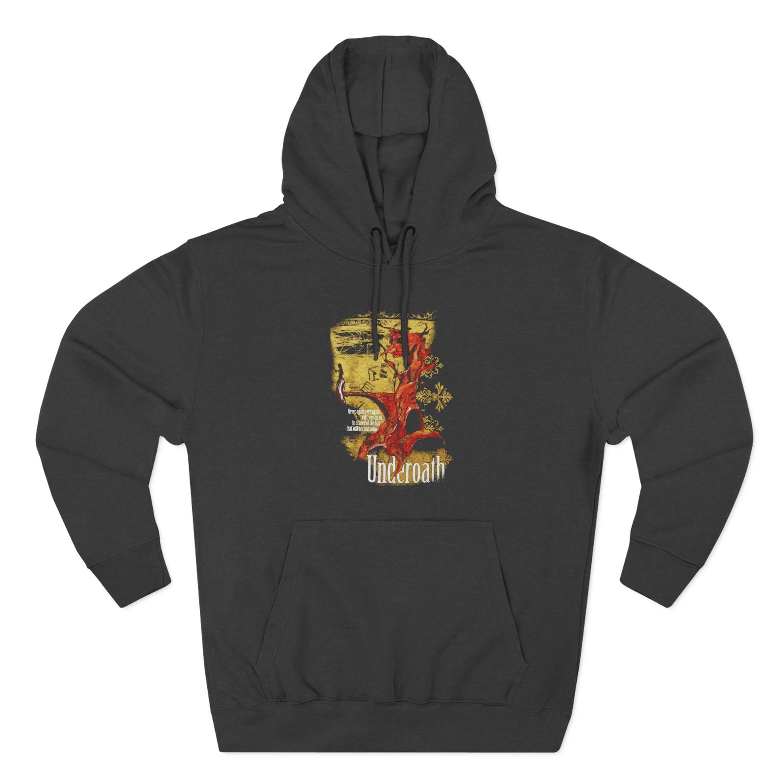 Beat the cold with this Underoath premium pullover hoodie that’s just the right layer of warm and cozy. Made with three-panel fleece lining, this pullover is double stitched for durability and roomy. Pick one in your favorite color to match your style.