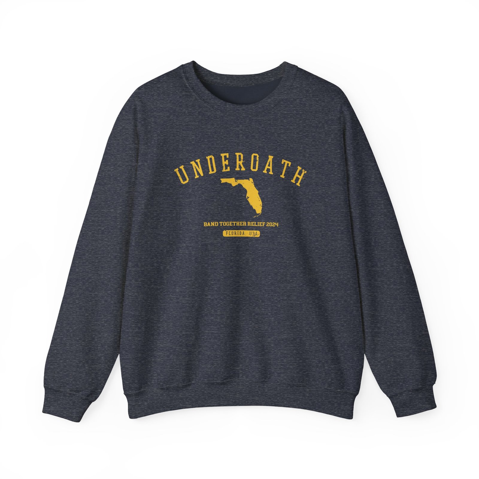 Ideal for any situation, a Underoath unisex heavy blend crewneck sweatshirt is pure comfort. These garments are made from polyester and cotton. This combination helps designs come out looking fresh and beautiful. The collar is ribbed knit, so it retains its shape even after washing. There are no itchy side seams on these sweaters.
