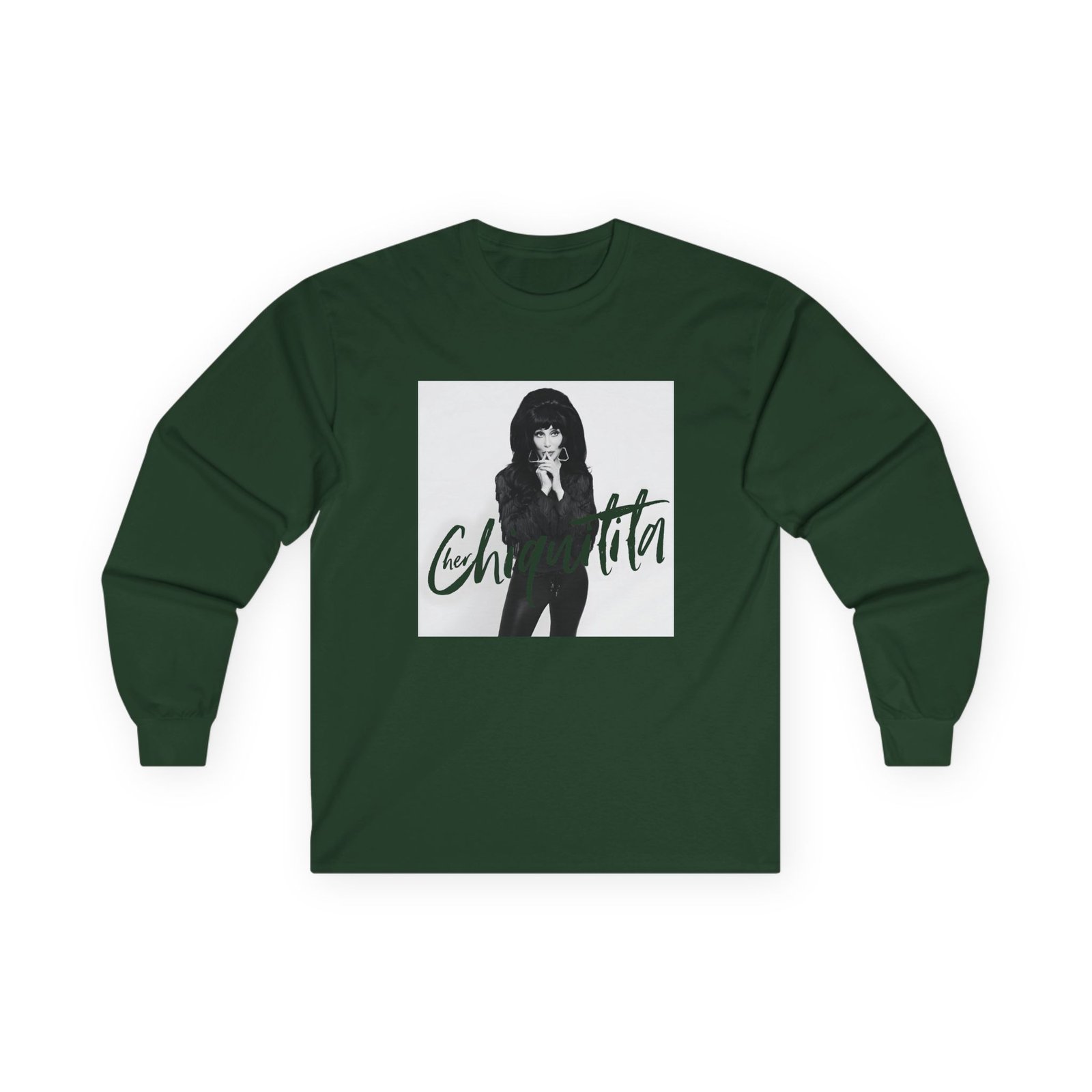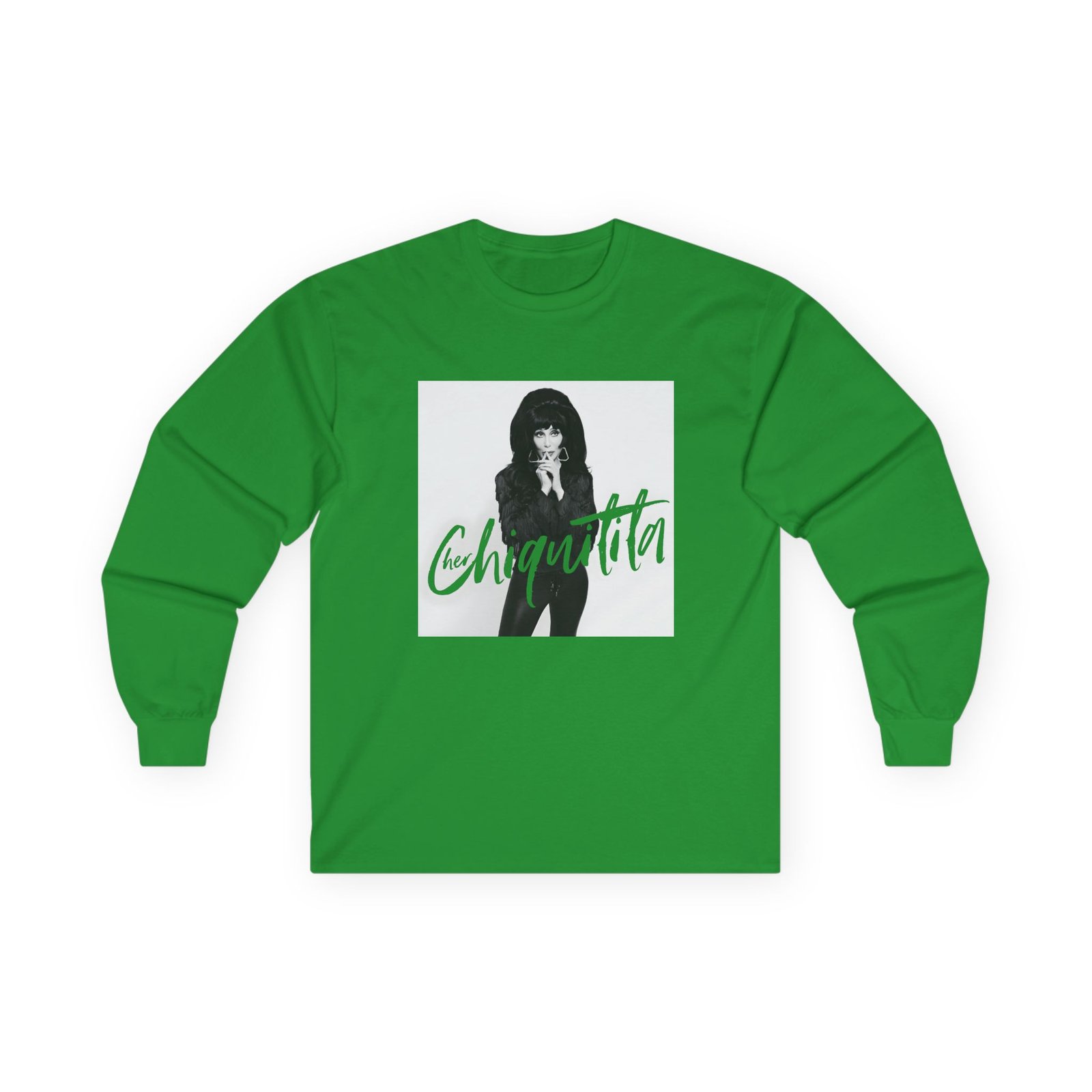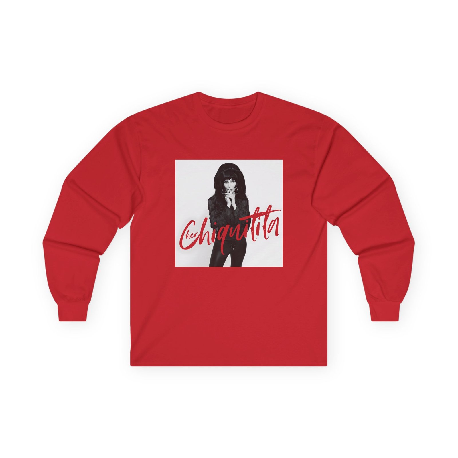 A bit more formal than a standard-issue t-shirt, the Cher Chiquitita Photo ultra cotton long sleeve tee is a clear comfort winner. The sleeves also act as a nice frame. There are no side seams. The shoulders are taped for improved durability. This makes for a good fitting around the shoulders and neck. The cotton used for these shirts is environmentally friendly.