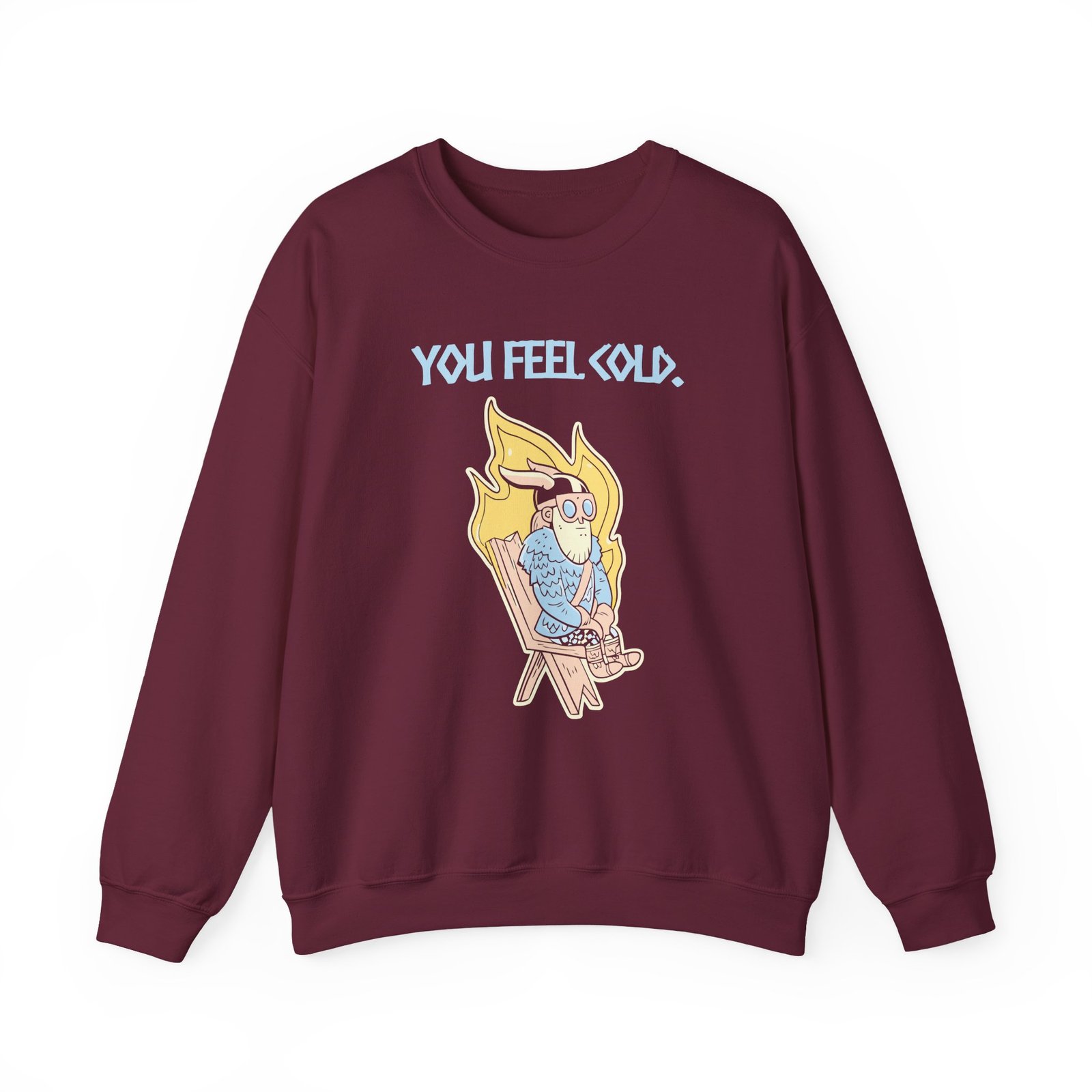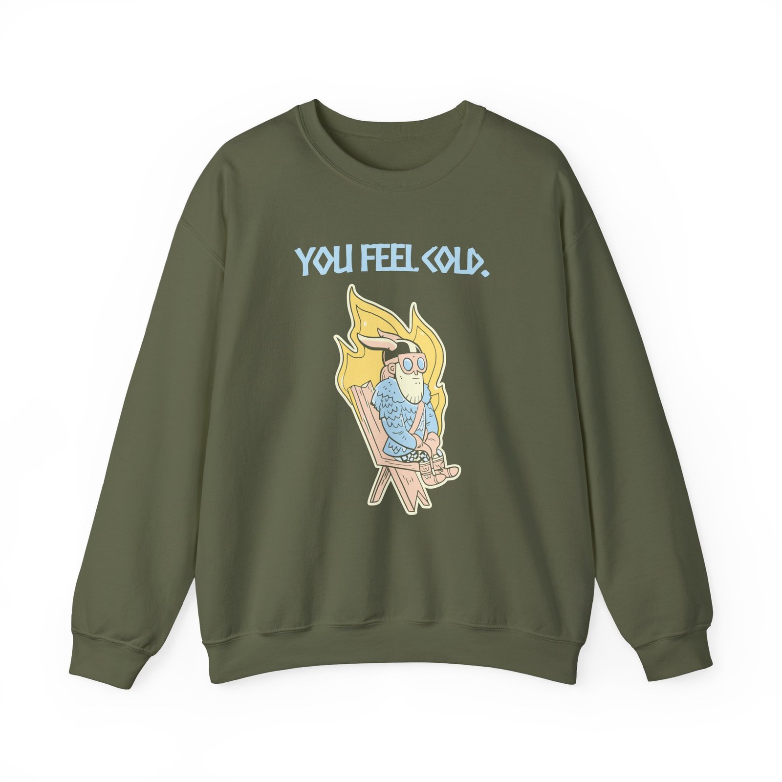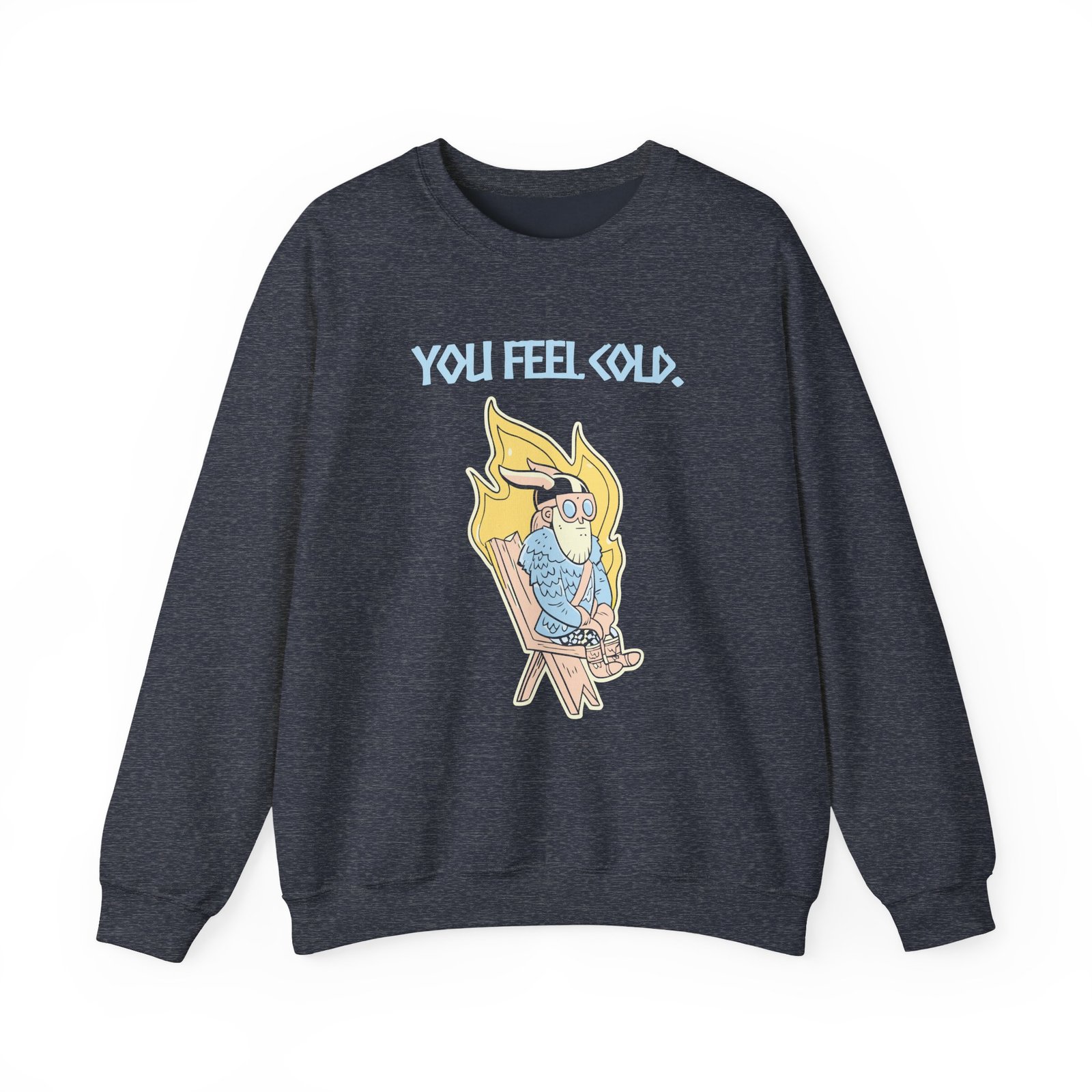Ideal for any situation, a Valheim You Feel Cold unisex heavy blend crewneck sweatshirt is pure comfort. These garments are made from polyester and cotton. This combination helps designs come out looking fresh and beautiful. The collar is ribbed knit, so it retains its shape even after washing. There are no itchy side seams on these sweaters.