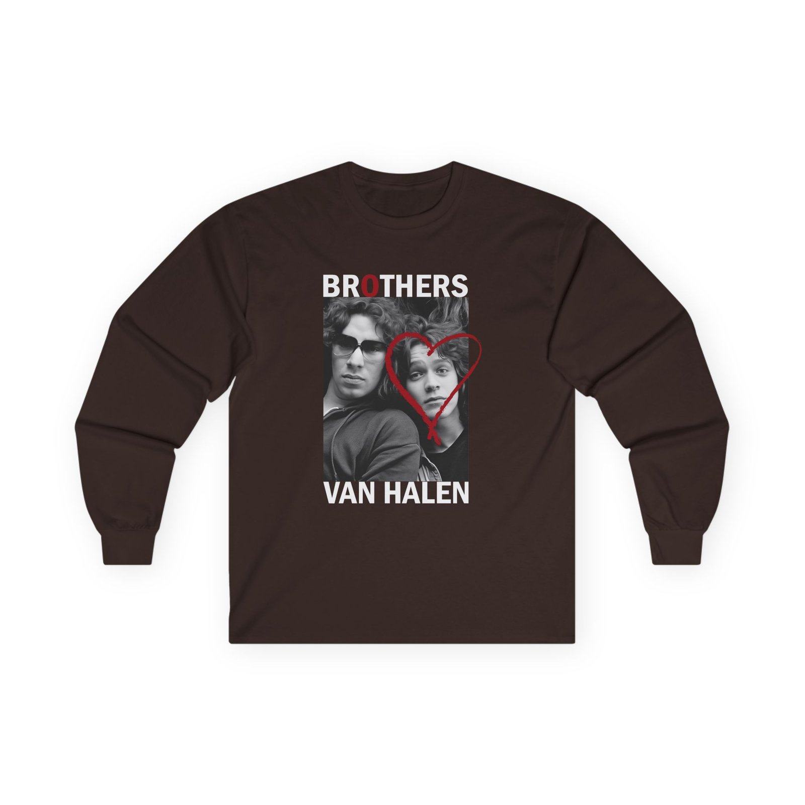 A bit more formal than a standard-issue t-shirt, the Van Halen Brothers ultra cotton long sleeve tee is a clear comfort winner. The sleeves also act as a nice frame. There are no side seams. The shoulders are taped for improved durability. This makes for a good fitting around the shoulders and neck. The cotton used for these shirts is environmentally friendly.