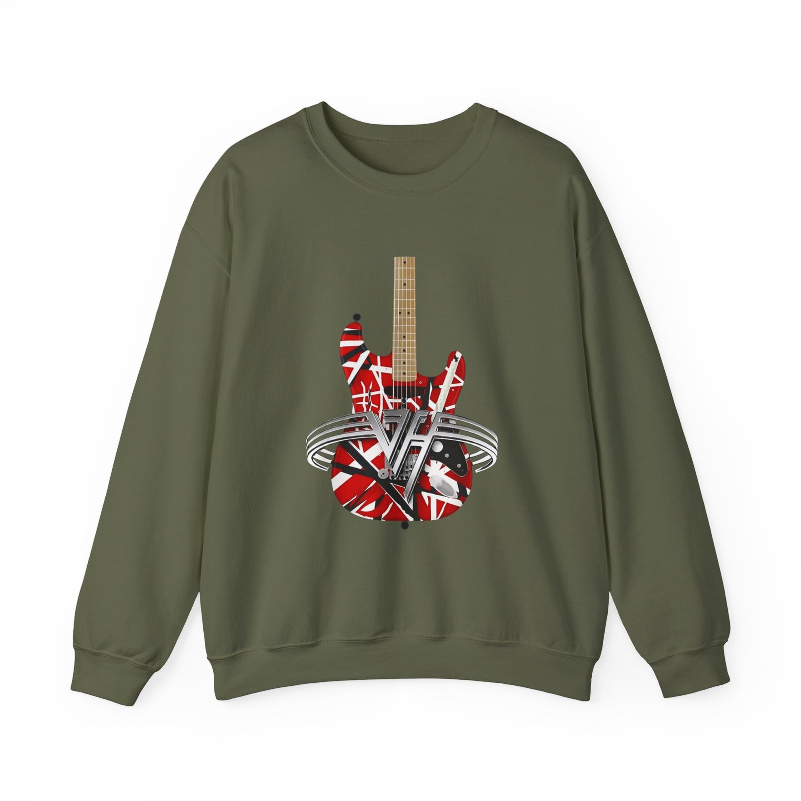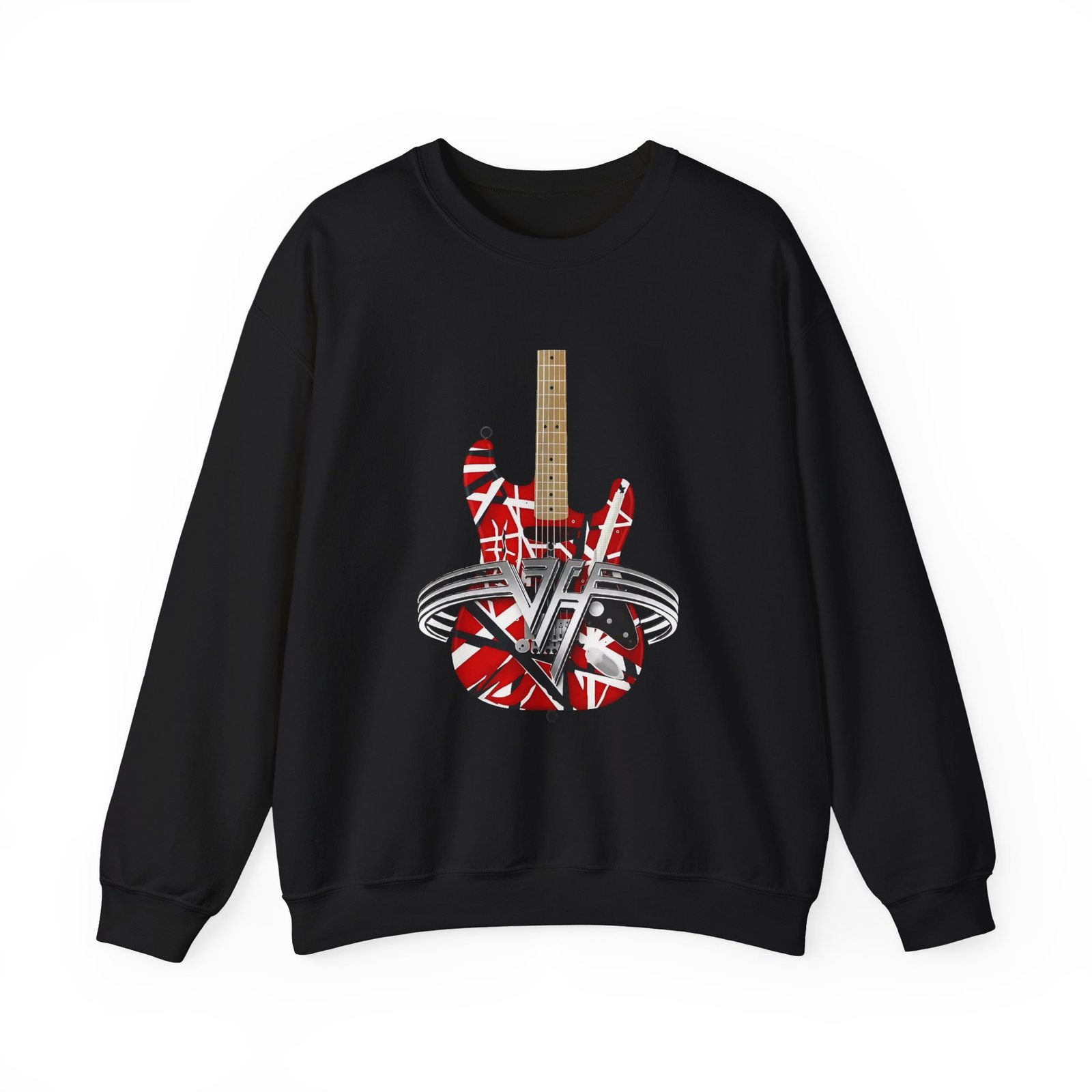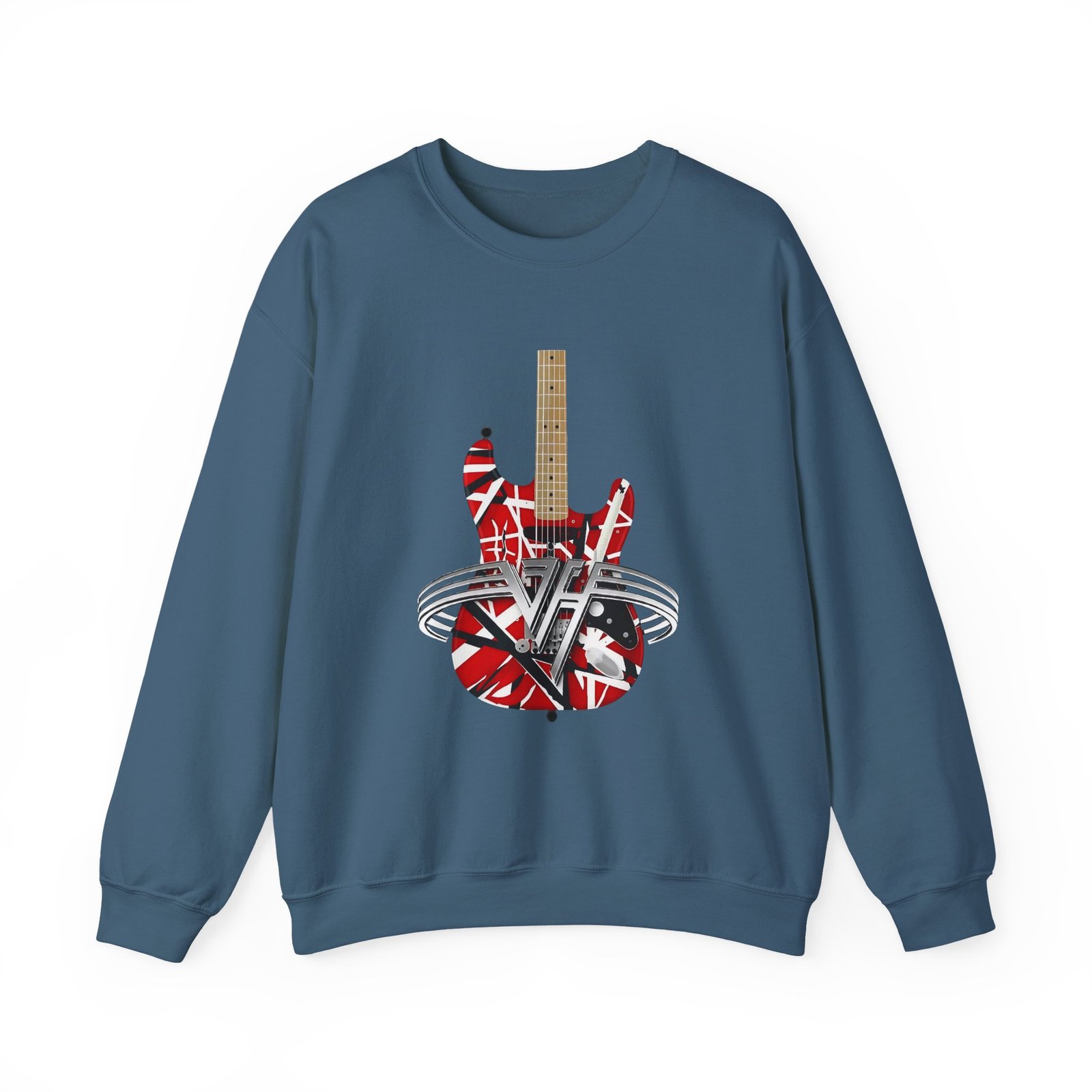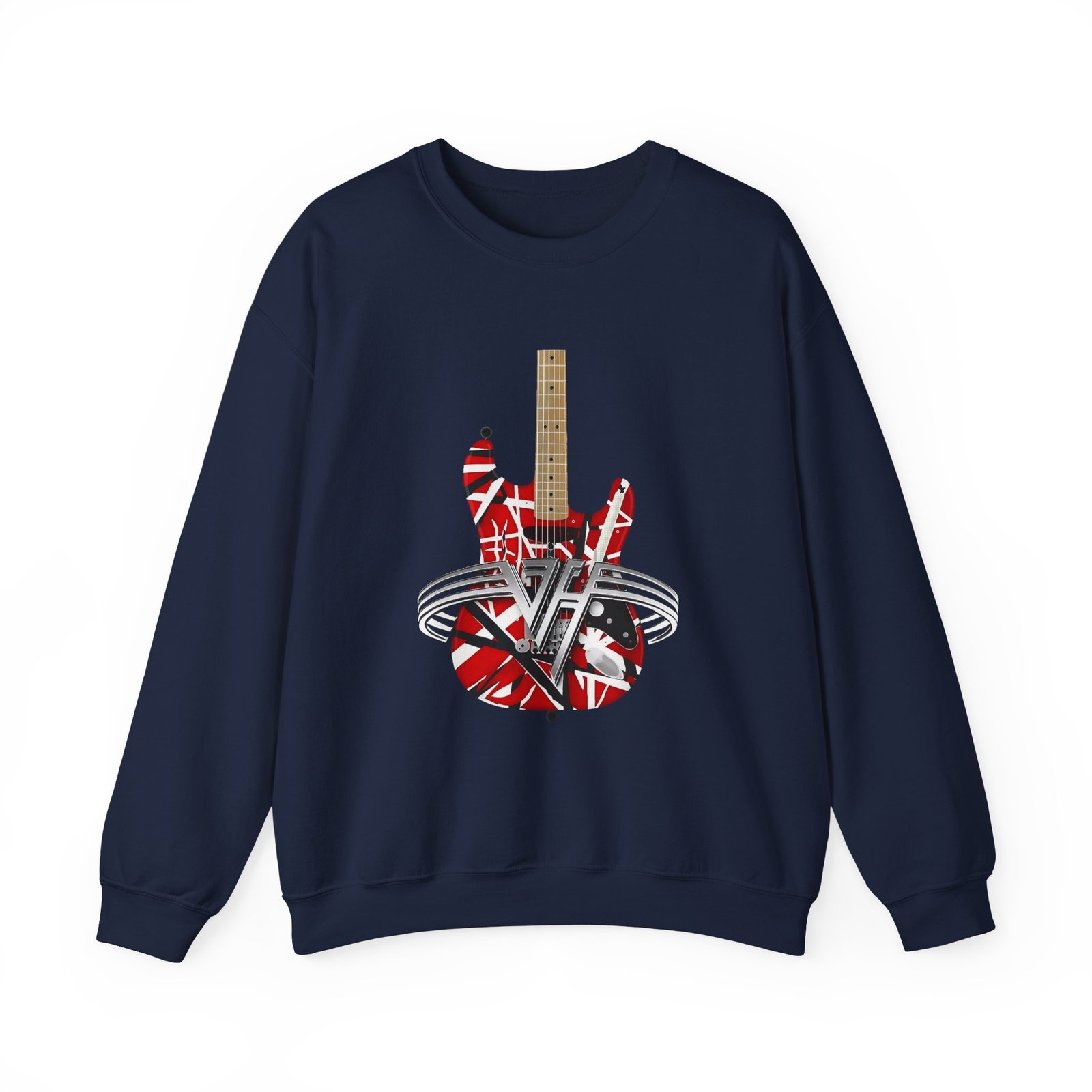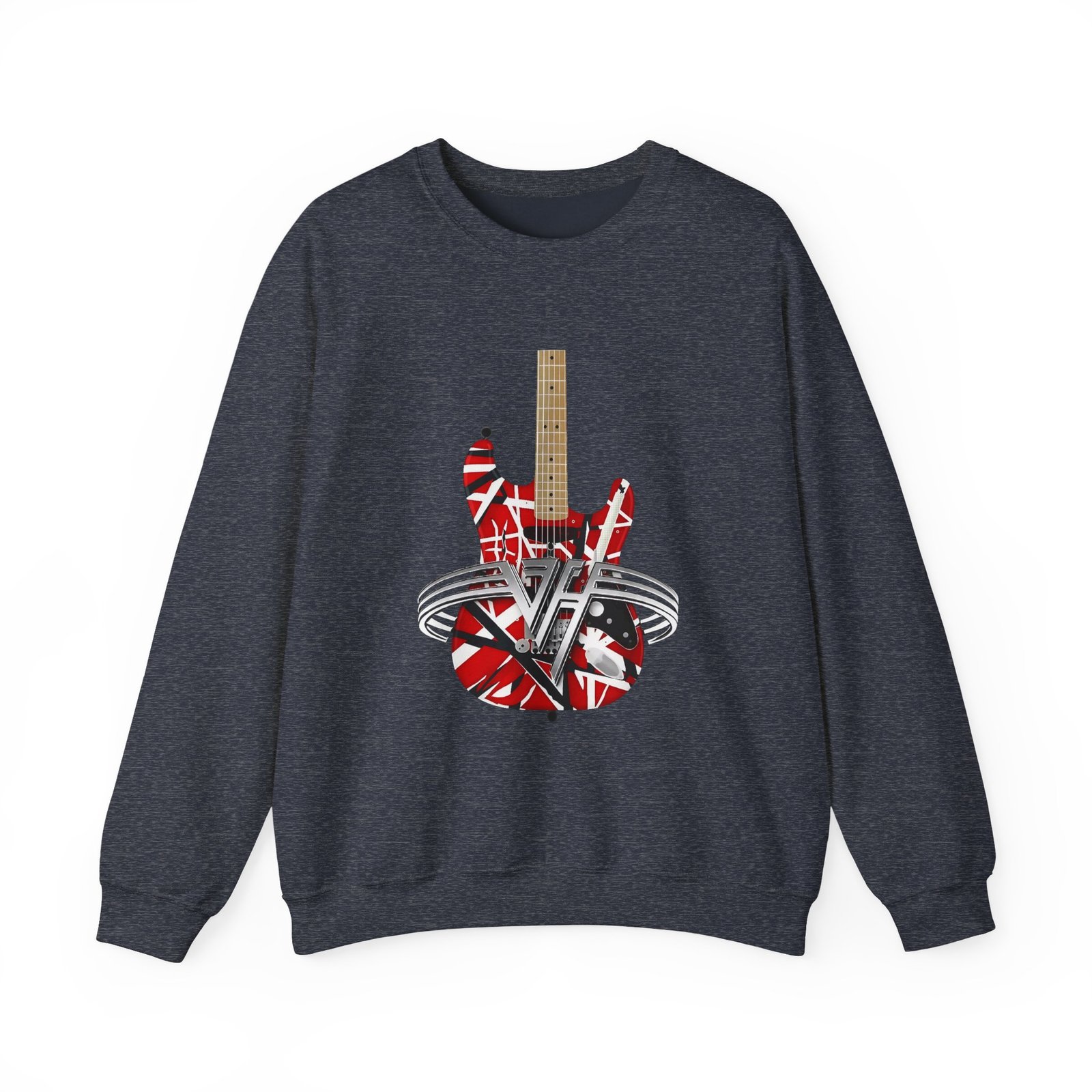Ideal for any situation, a Van Halen Guitar unisex heavy blend crewneck sweatshirt is pure comfort. These garments are made from polyester and cotton. This combination helps designs come out looking fresh and beautiful. The collar is ribbed knit, so it retains its shape even after washing. There are no itchy side seams on these sweaters.