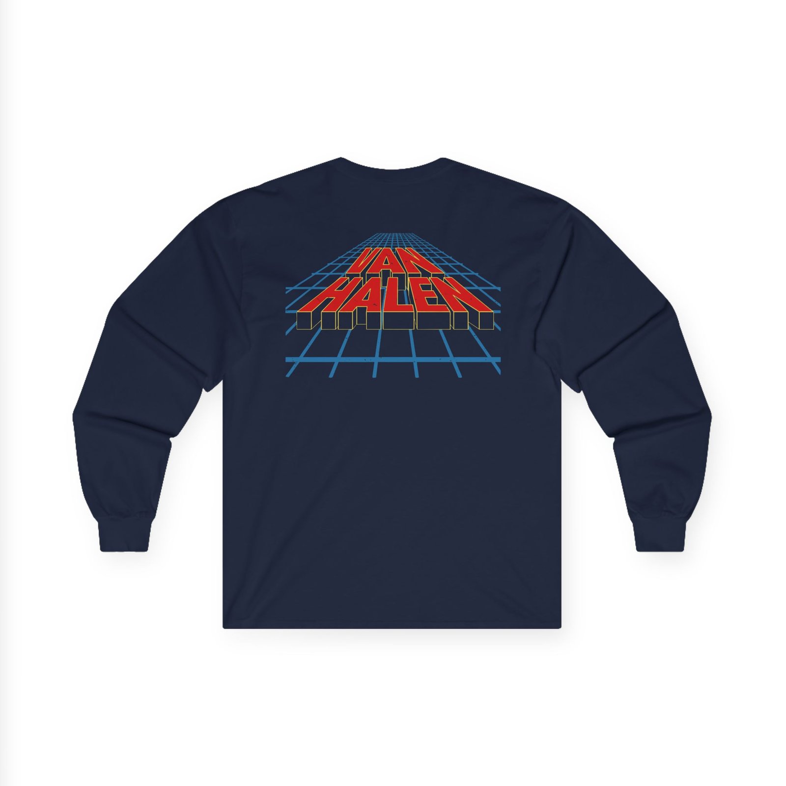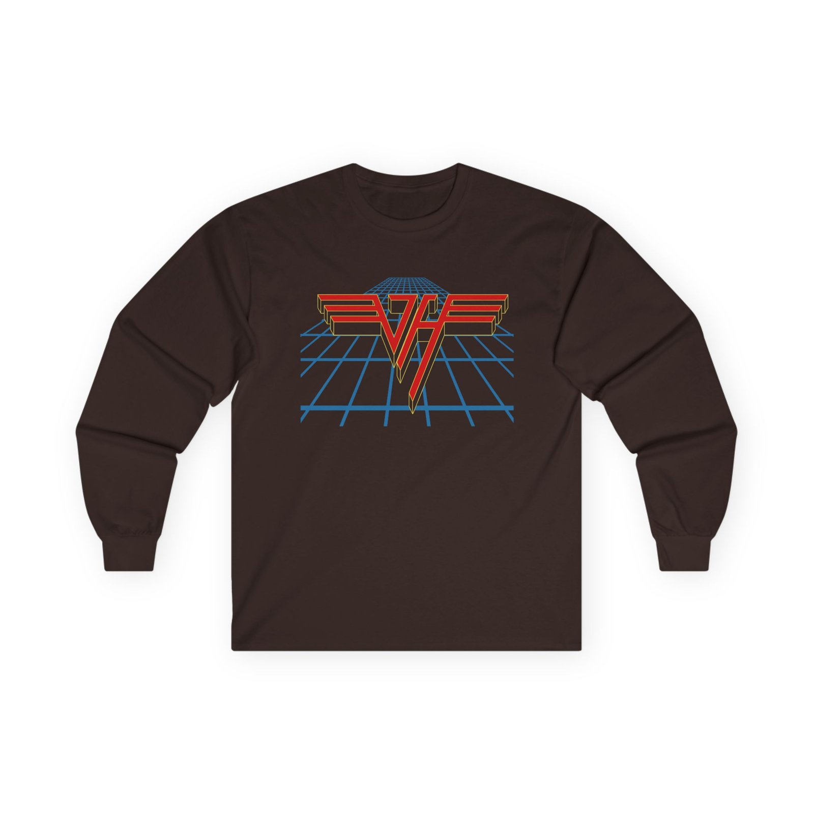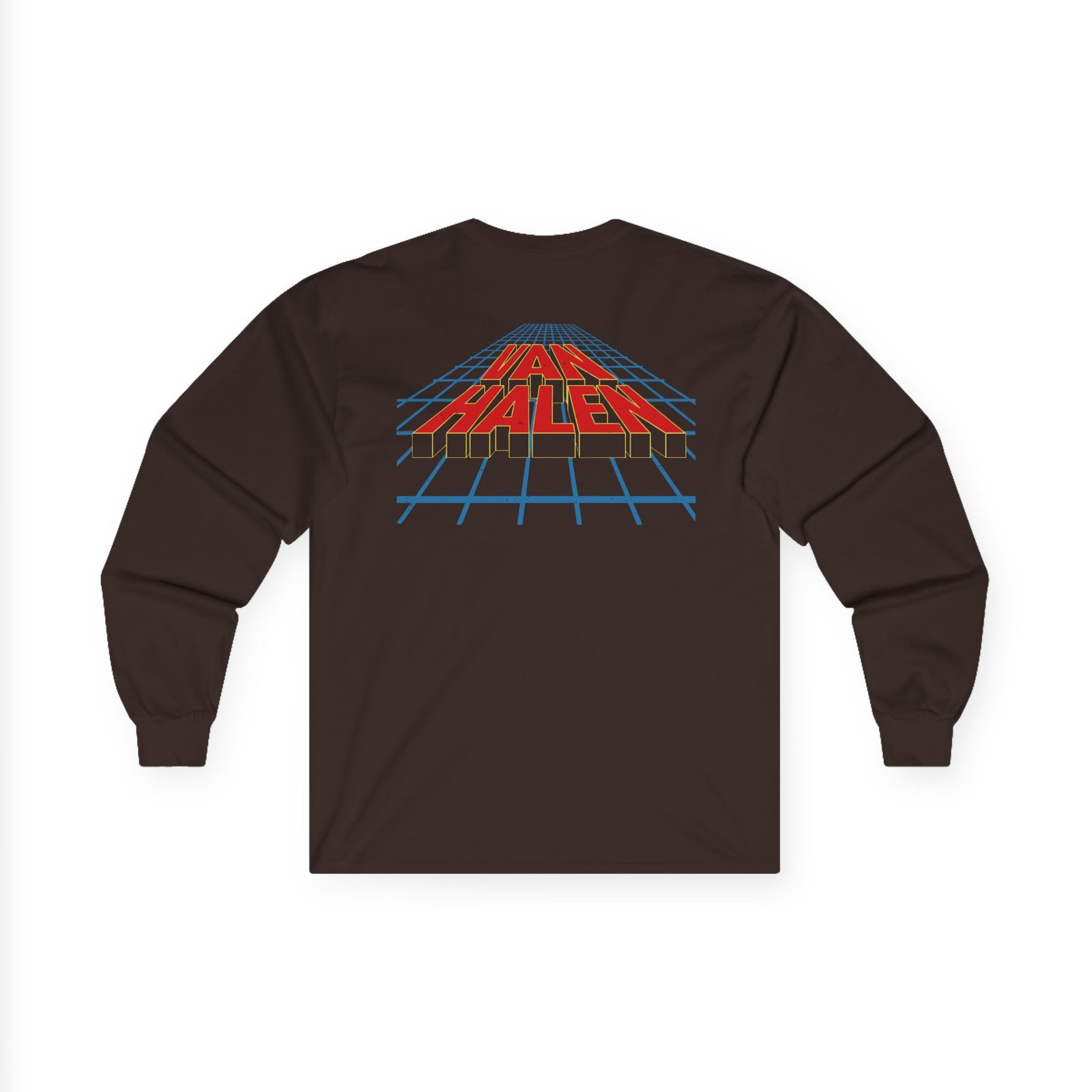 A bit more formal than a standard-issue t-shirt, the Van Halen1984 ultra cotton long sleeve tee is a clear comfort winner. The sleeves also act as a nice frame. There are no side seams. The shoulders are taped for improved durability. This makes for a good fitting around the shoulders and neck. The cotton used for these shirts is environmentally friendly.