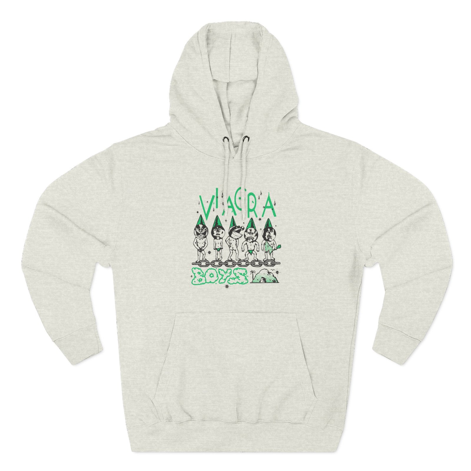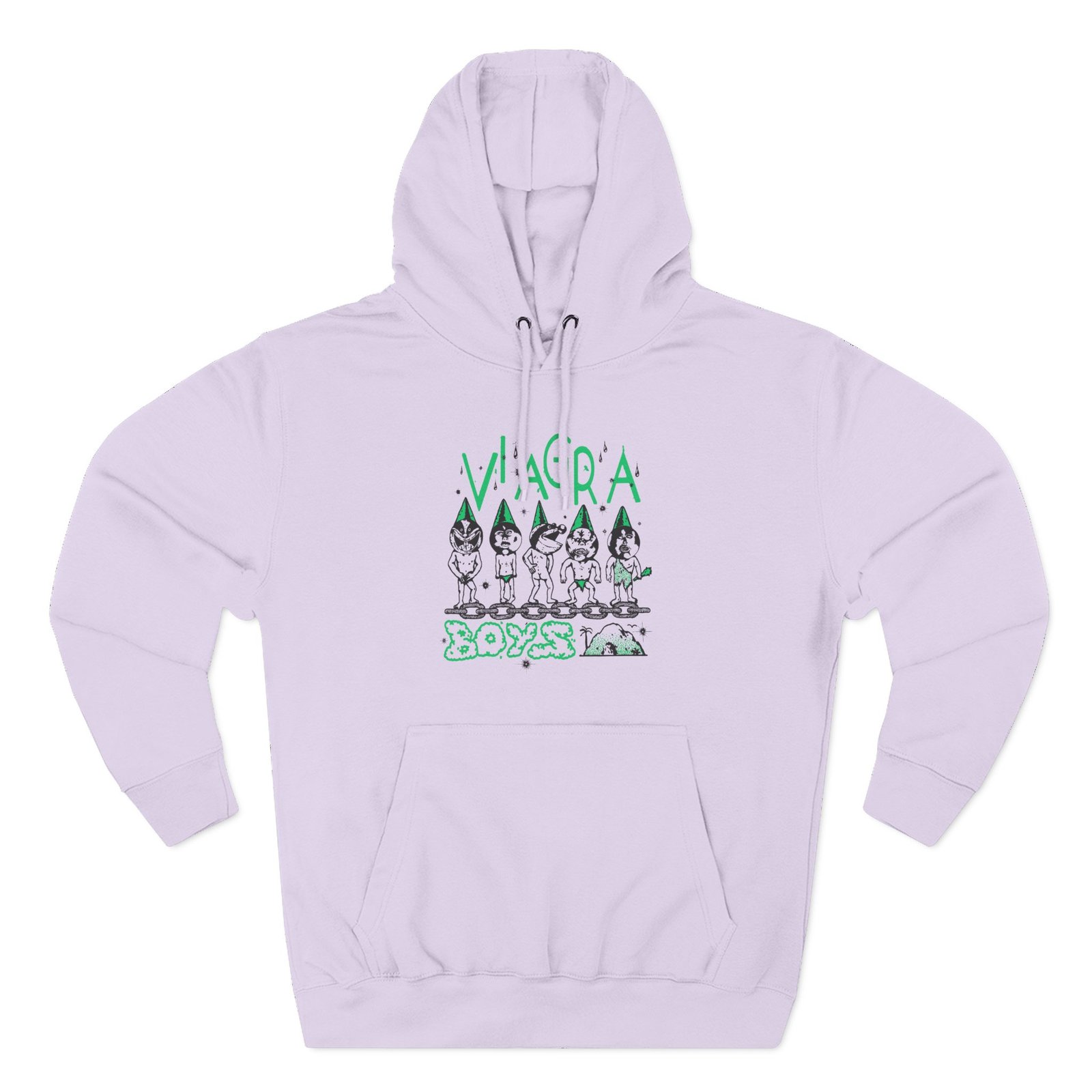 Beat the cold with this Viagra Boys Gnomes premium pullover hoodie that’s just the right layer of warm and cozy. Made with three-panel fleece lining, this pullover is double stitched for durability and roomy. Pick one in your favorite color to match your style.