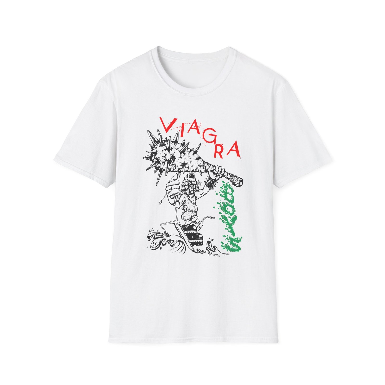 The Viagra Boys Surf unisex soft-style t-shirt puts a new spin on casual comfort. Made from very soft materials, this tee is 100% cotton for solid colors. Heather colors and sports grey include polyester. The shoulders have twill tape for improved durability. There are no side seams. The collar is made with ribbed knitting to prevent curling damage.