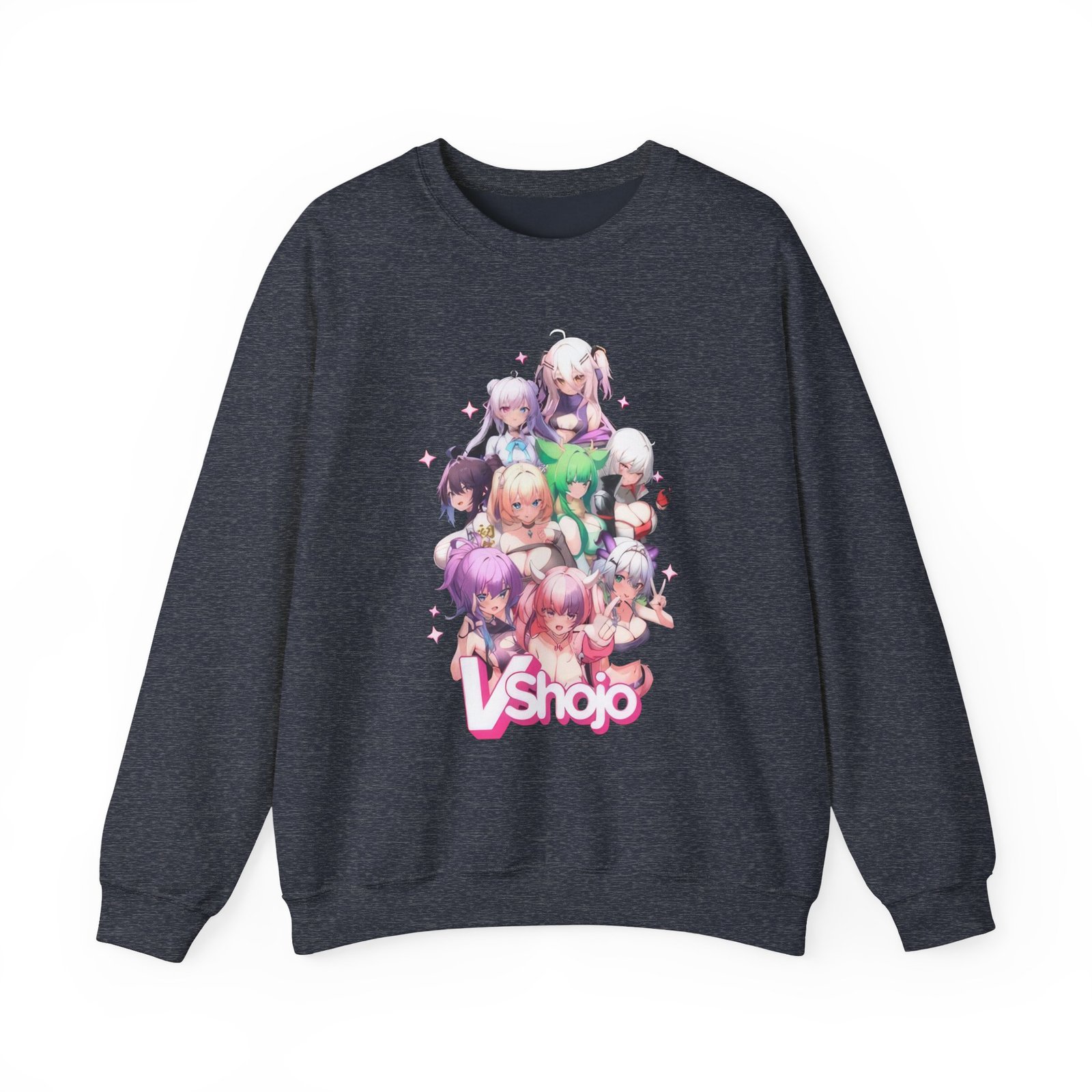 Ideal for any situation, a Vshojo 2023 Convention unisex heavy blend crewneck sweatshirt is pure comfort. These garments are made from polyester and cotton. This combination helps designs come out looking fresh and beautiful. The collar is ribbed knit, so it retains its shape even after washing. There are no itchy side seams on these sweaters.