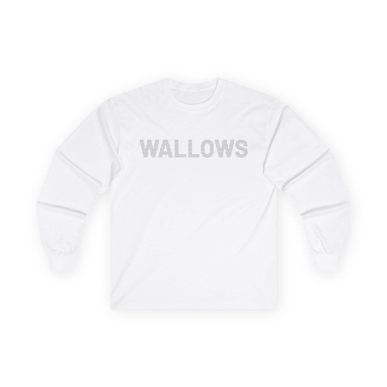 A bit more formal than a standard-issue t-shirt, the Wallows Rhinestone Logo ultra cotton long sleeve tee is a clear comfort winner. The sleeves also act as a nice frame. There are no side seams. The shoulders are taped for improved durability. This makes for a good fitting around the shoulders and neck. The cotton used for these shirts is environmentally friendly.