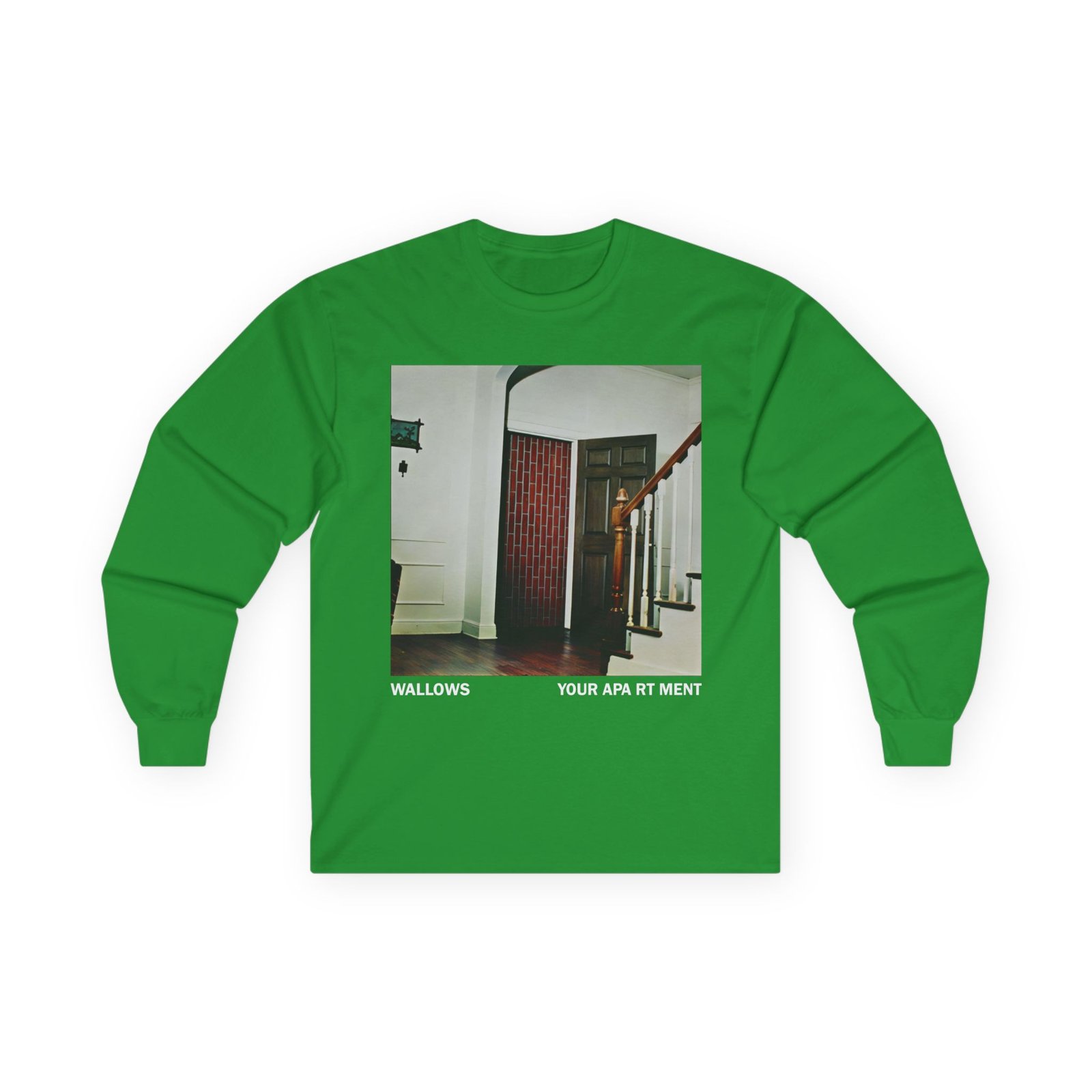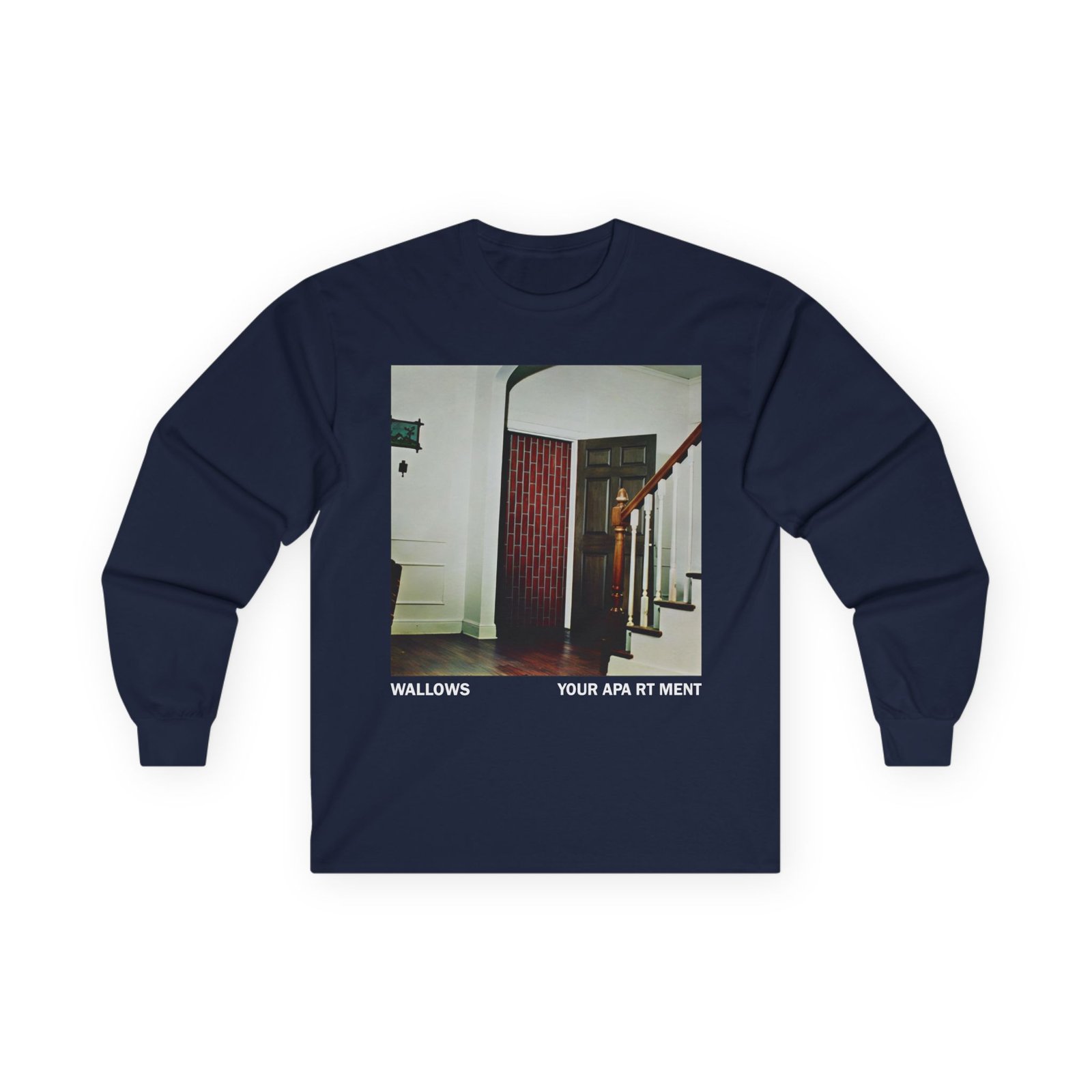 A bit more formal than a standard-issue t-shirt, the Wallows Your Apartment ultra cotton long sleeve tee is a clear comfort winner. The sleeves also act as a nice frame. There are no side seams. The shoulders are taped for improved durability. This makes for a good fitting around the shoulders and neck. The cotton used for these shirts is environmentally friendly.