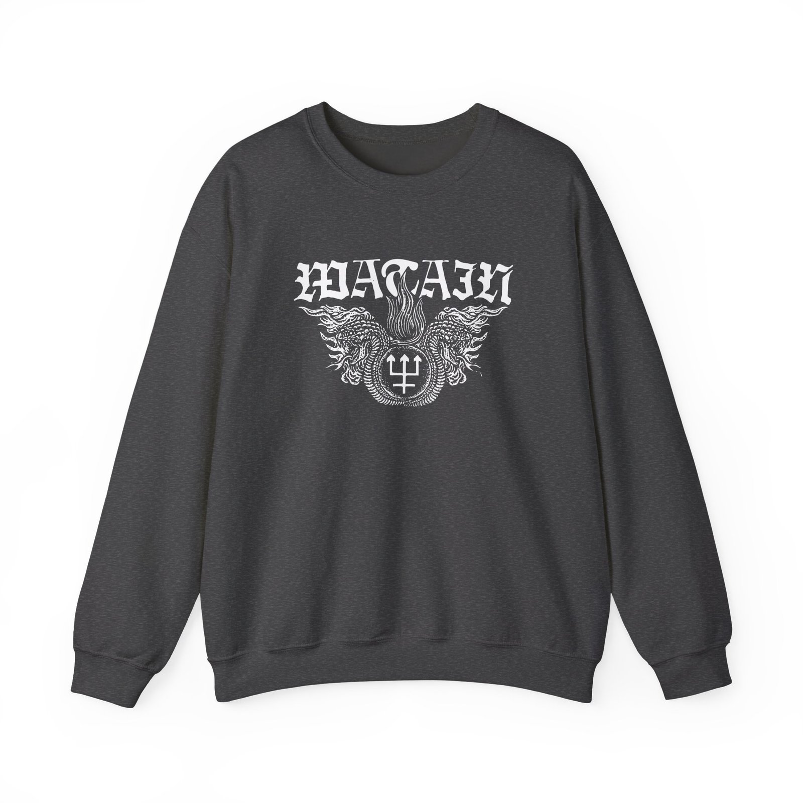 Ideal for any situation, a Watain Emblem 2022 unisex heavy blend crewneck sweatshirt is pure comfort. These garments are made from polyester and cotton. This combination helps designs come out looking fresh and beautiful. The collar is ribbed knit, so it retains its shape even after washing. There are no itchy side seams on these sweaters.