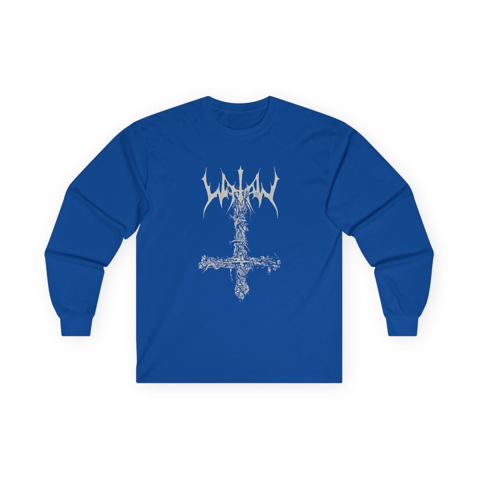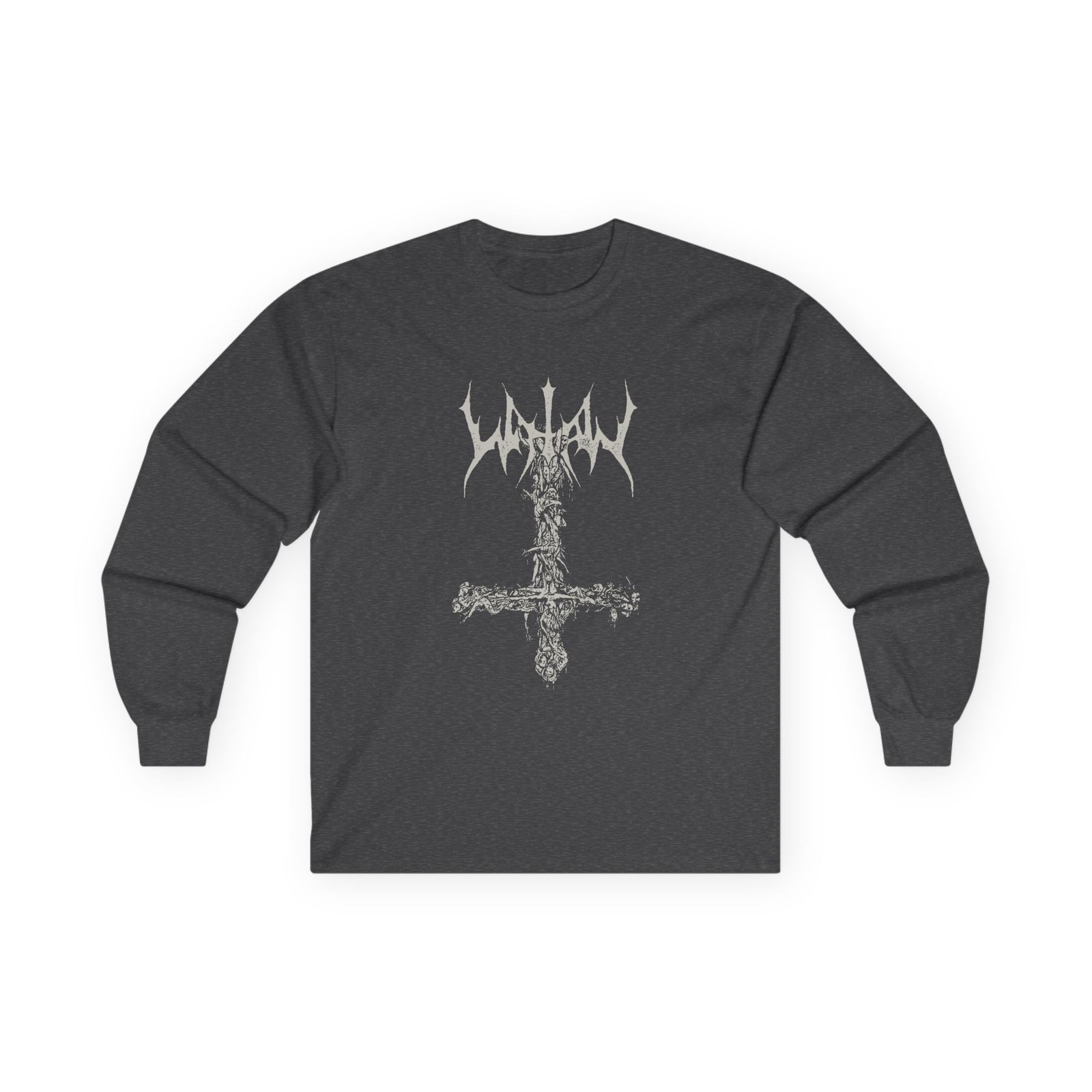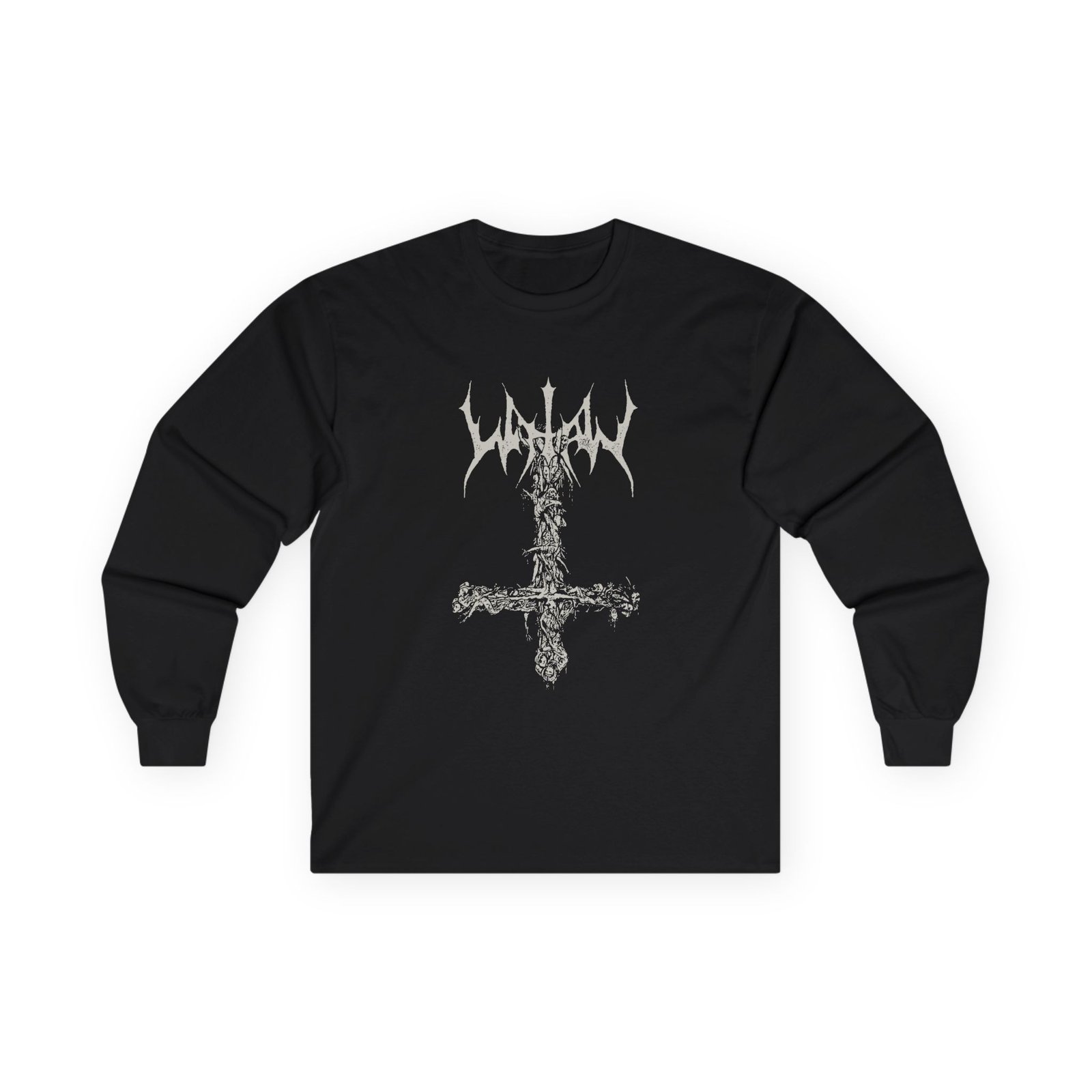 A bit more formal than a standard-issue t-shirt, the Watain Limb Crucifix ultra cotton long sleeve tee is a clear comfort winner. The sleeves also act as a nice frame. There are no side seams. The shoulders are taped for improved durability. This makes for a good fitting around the shoulders and neck. The cotton used for these shirts is environmentally friendly.
