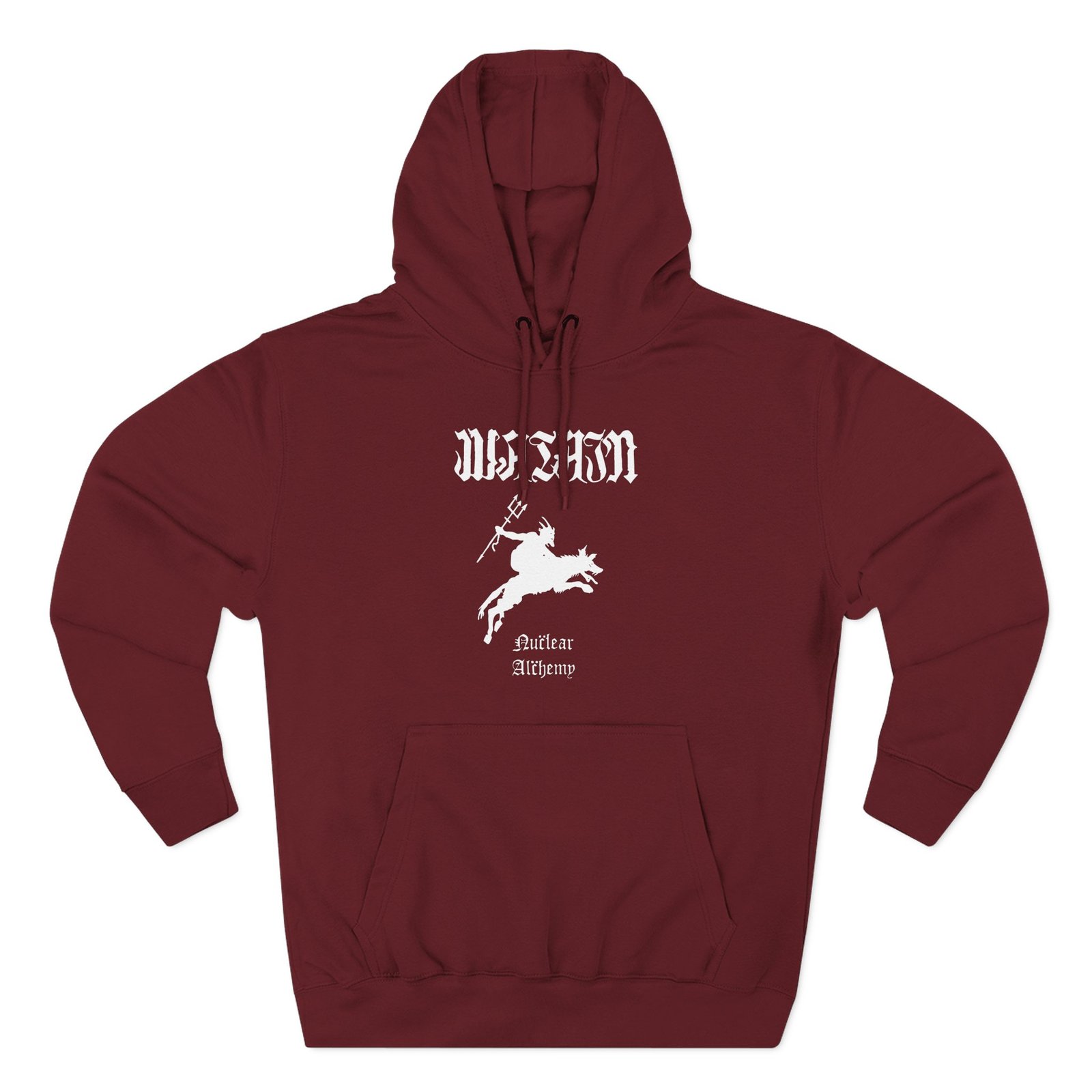 Beat the cold with this Watain Nuclear Alchemy premium pullover hoodie that’s just the right layer of warm and cozy. Made with three-panel fleece lining, this pullover is double stitched for durability and roomy. Pick one in your favorite color to match your style.