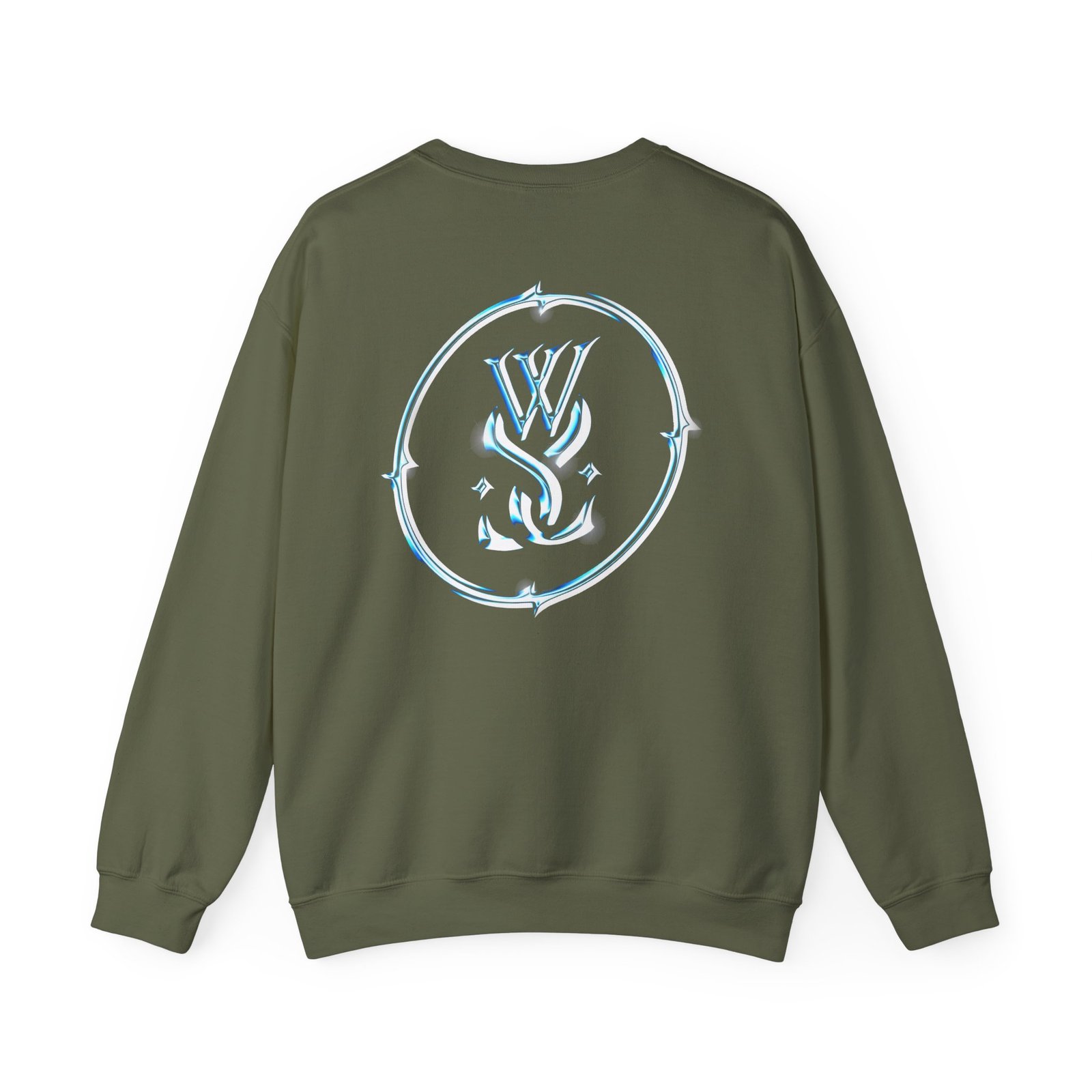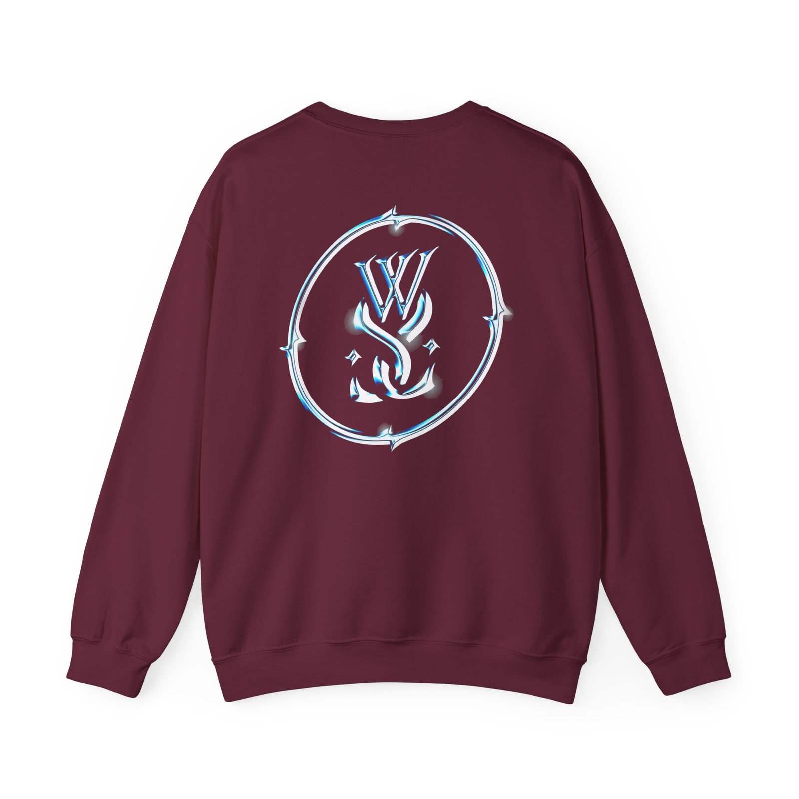 Ideal for any situation, a While She Sleeps Chrome unisex heavy blend crewneck sweatshirt is pure comfort. These garments are made from polyester and cotton. This combination helps designs come out looking fresh and beautiful. The collar is ribbed knit, so it retains its shape even after washing. There are no itchy side seams on these sweaters.
