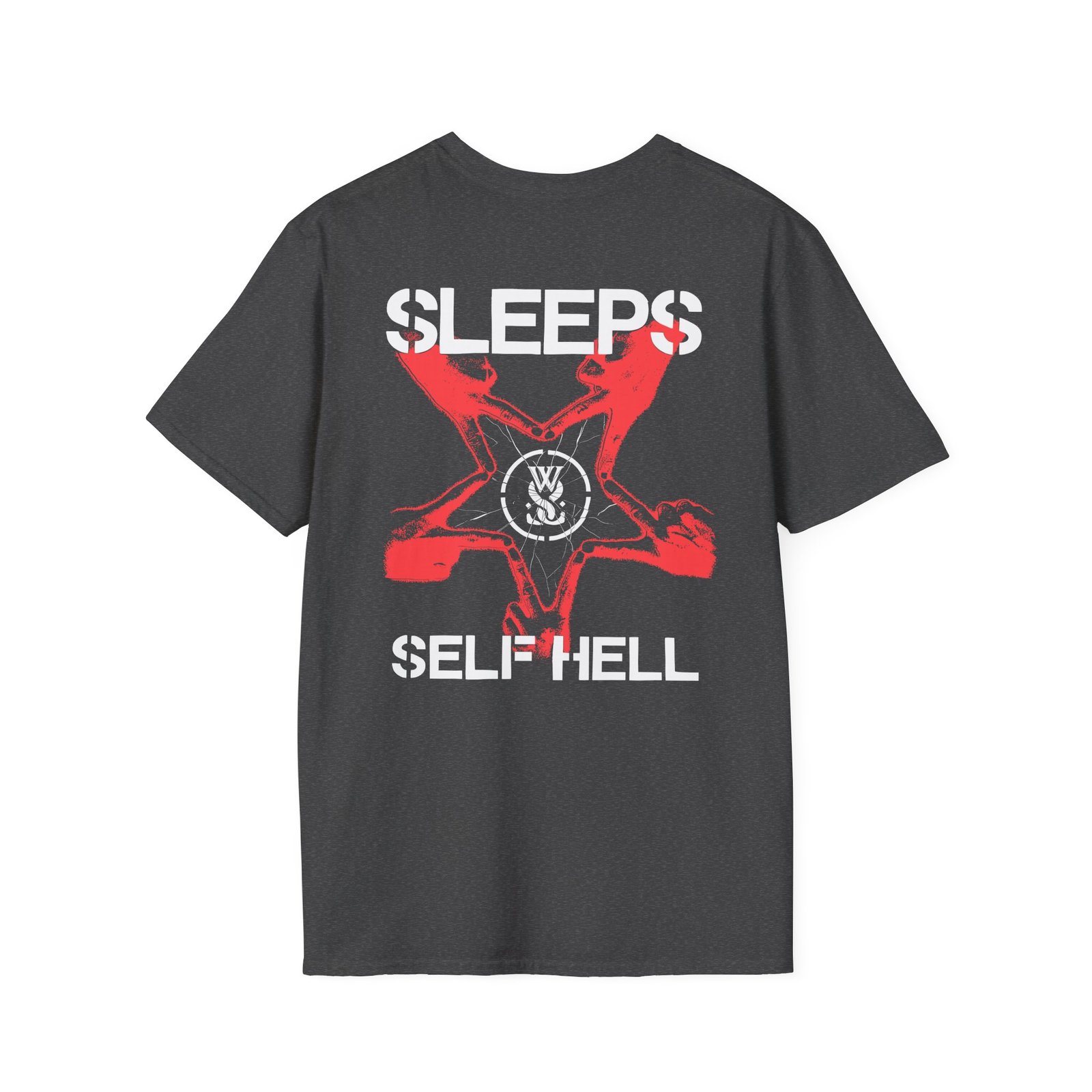 The While She Sleeps Self Hell Pentagram unisex soft-style t-shirt puts a new spin on casual comfort. Made from very soft materials, this tee is 100% cotton for solid colors. Heather colors and sports grey include polyester. The shoulders have twill tape for improved durability. There are no side seams. The collar is made with ribbed knitting to prevent curling damage.
