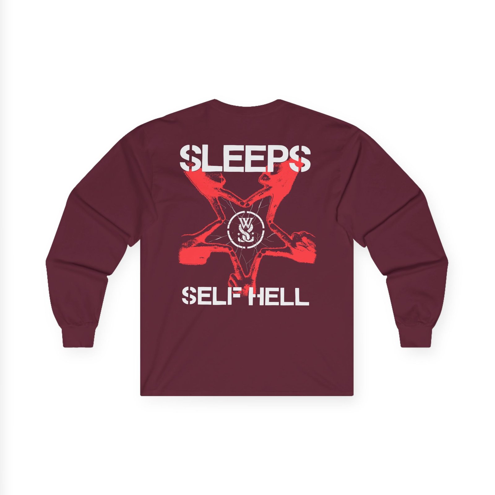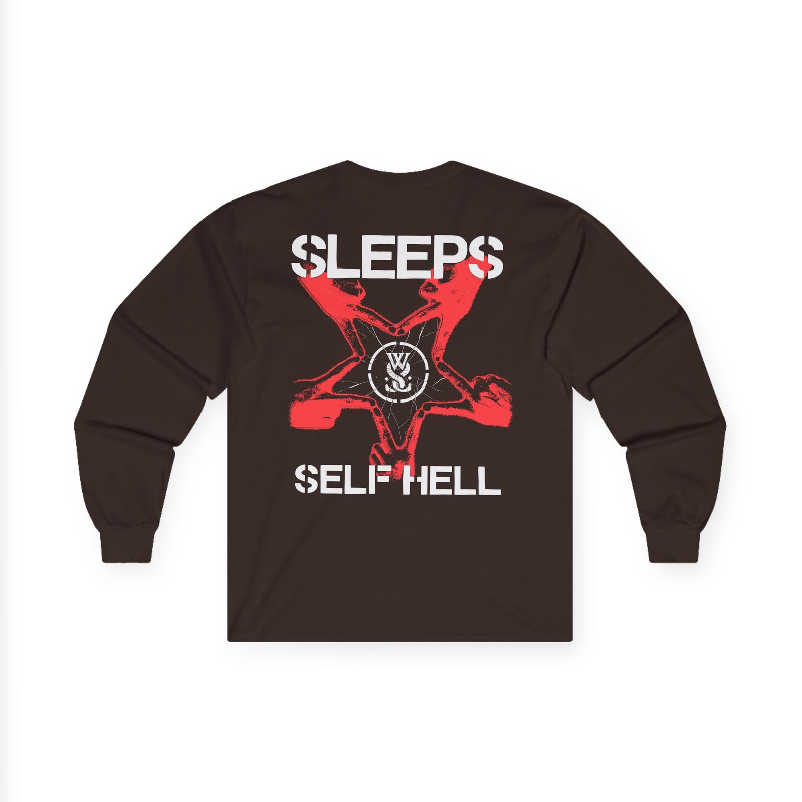 A bit more formal than a standard-issue t-shirt, the While She Sleeps Self Hell Pentagram ultra cotton long sleeve tee is a clear comfort winner. The sleeves also act as a nice frame. There are no side seams. The shoulders are taped for improved durability. This makes for a good fitting around the shoulders and neck. The cotton used for these shirts is environmentally friendly.