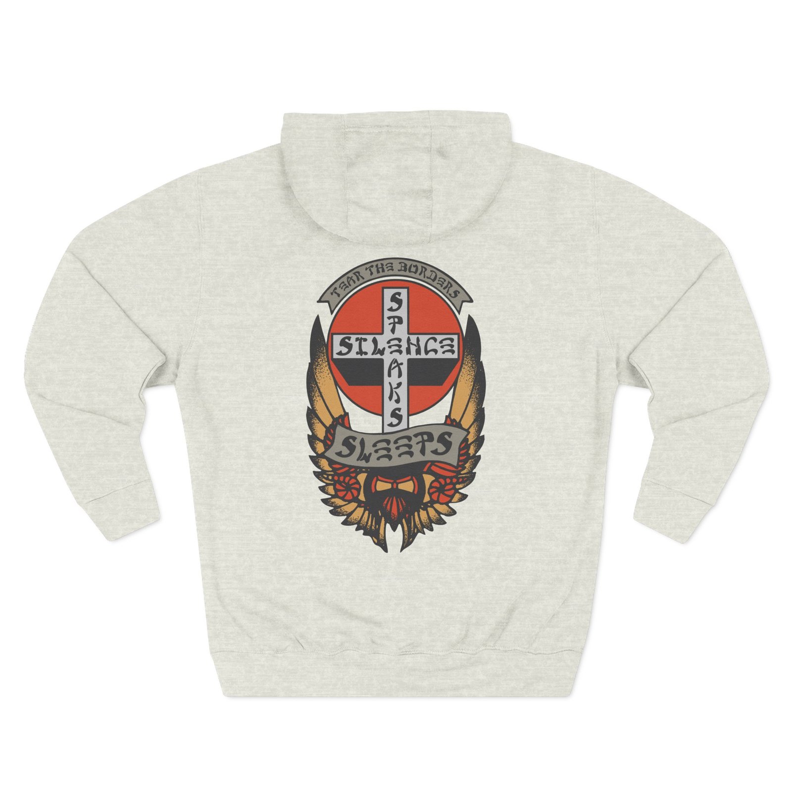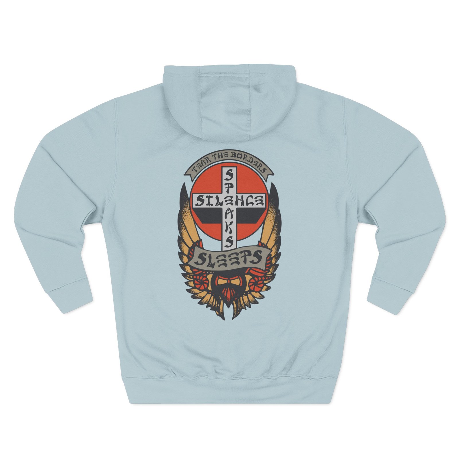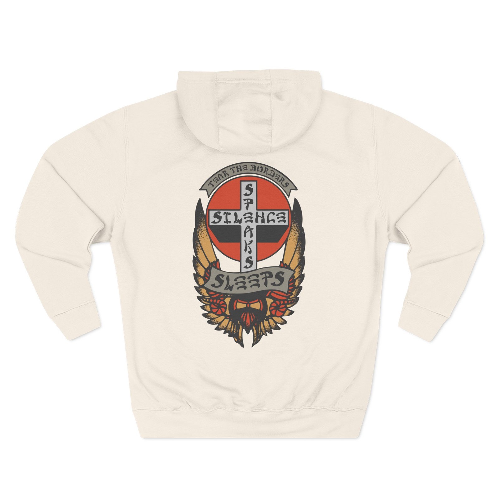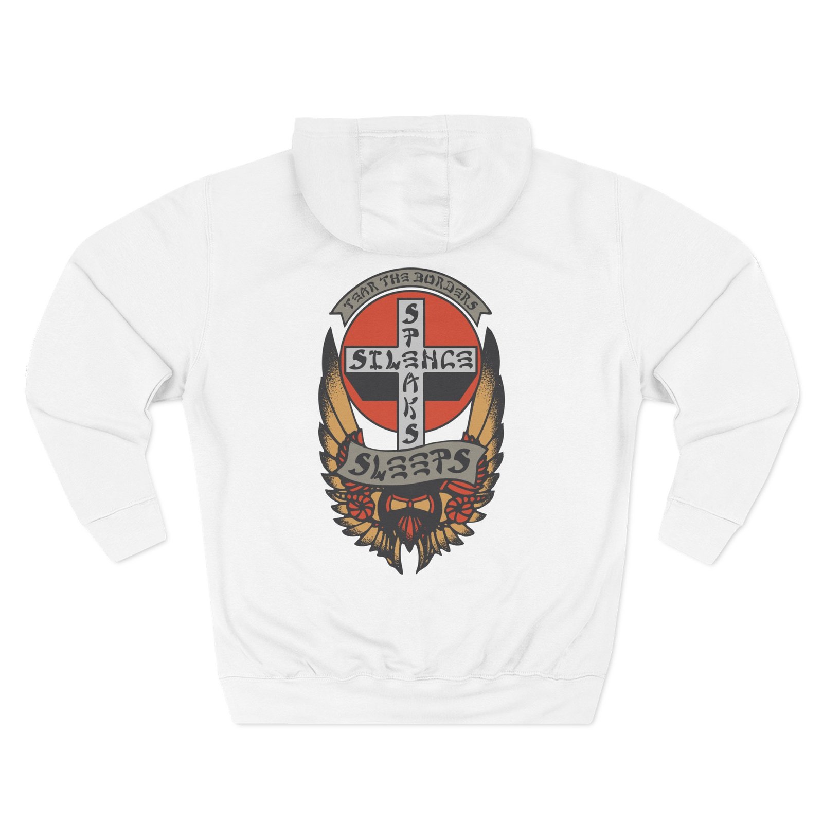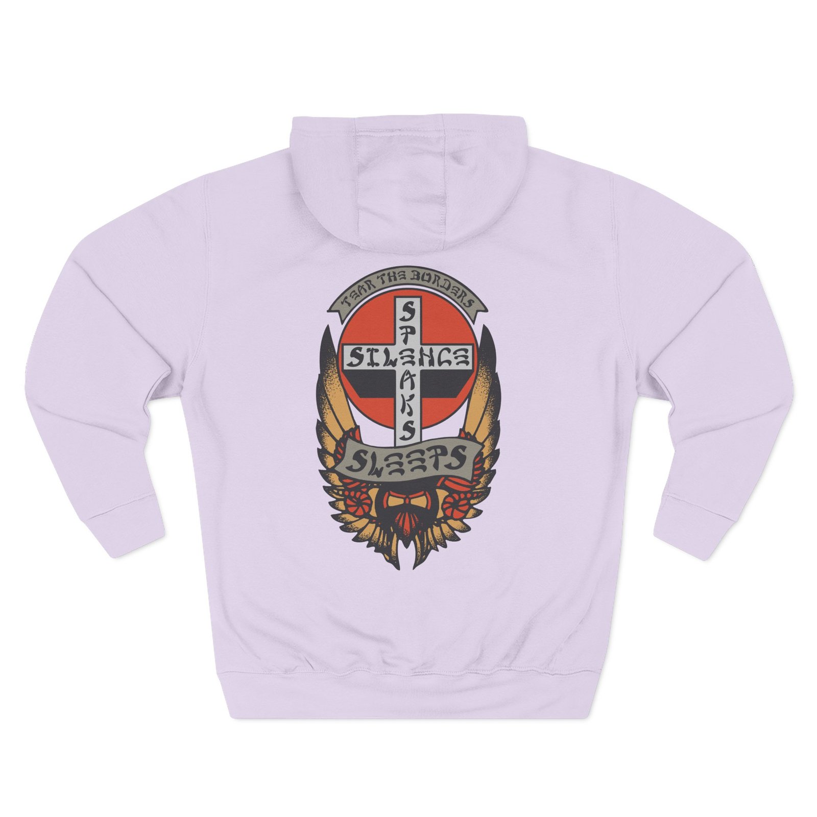Beat the cold with this While She Sleeps Silence Speaks premium pullover hoodie that’s just the right layer of warm and cozy. Made with three-panel fleece lining, this pullover is double stitched for durability and roomy. Pick one in your favorite color to match your style.