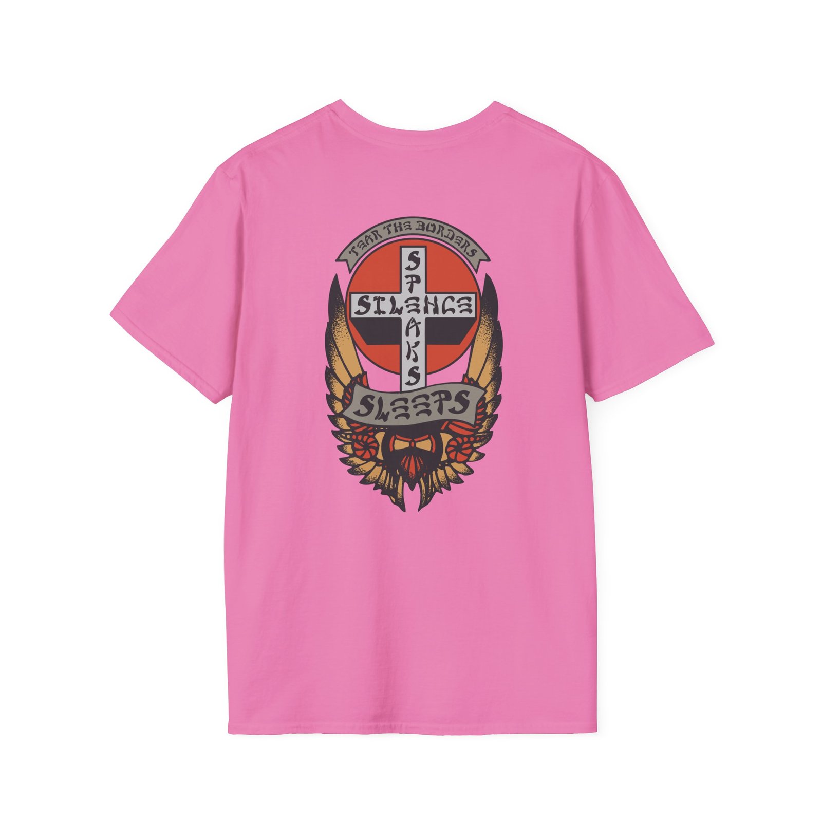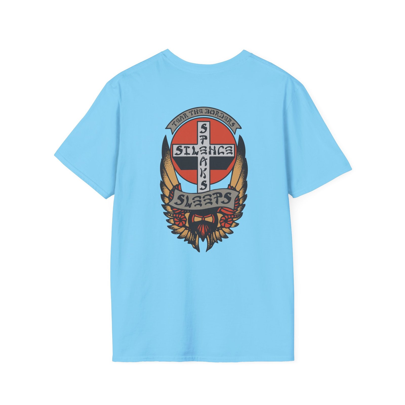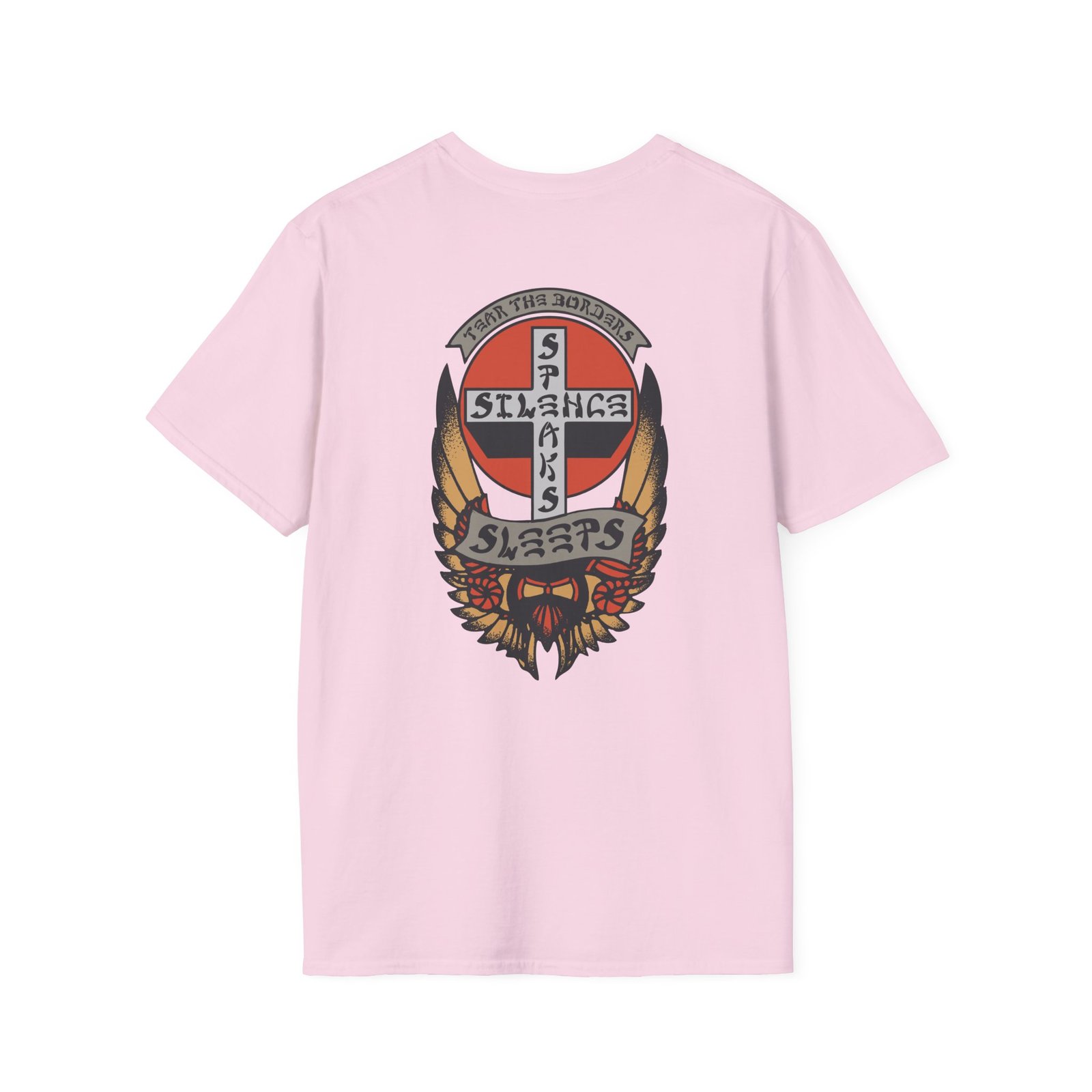 The While She Sleeps Silence Speaks unisex soft-style t-shirt puts a new spin on casual comfort. Made from very soft materials, this tee is 100% cotton for solid colors. Heather colors and sports grey include polyester. The shoulders have twill tape for improved durability. There are no side seams. The collar is made with ribbed knitting to prevent curling damage.