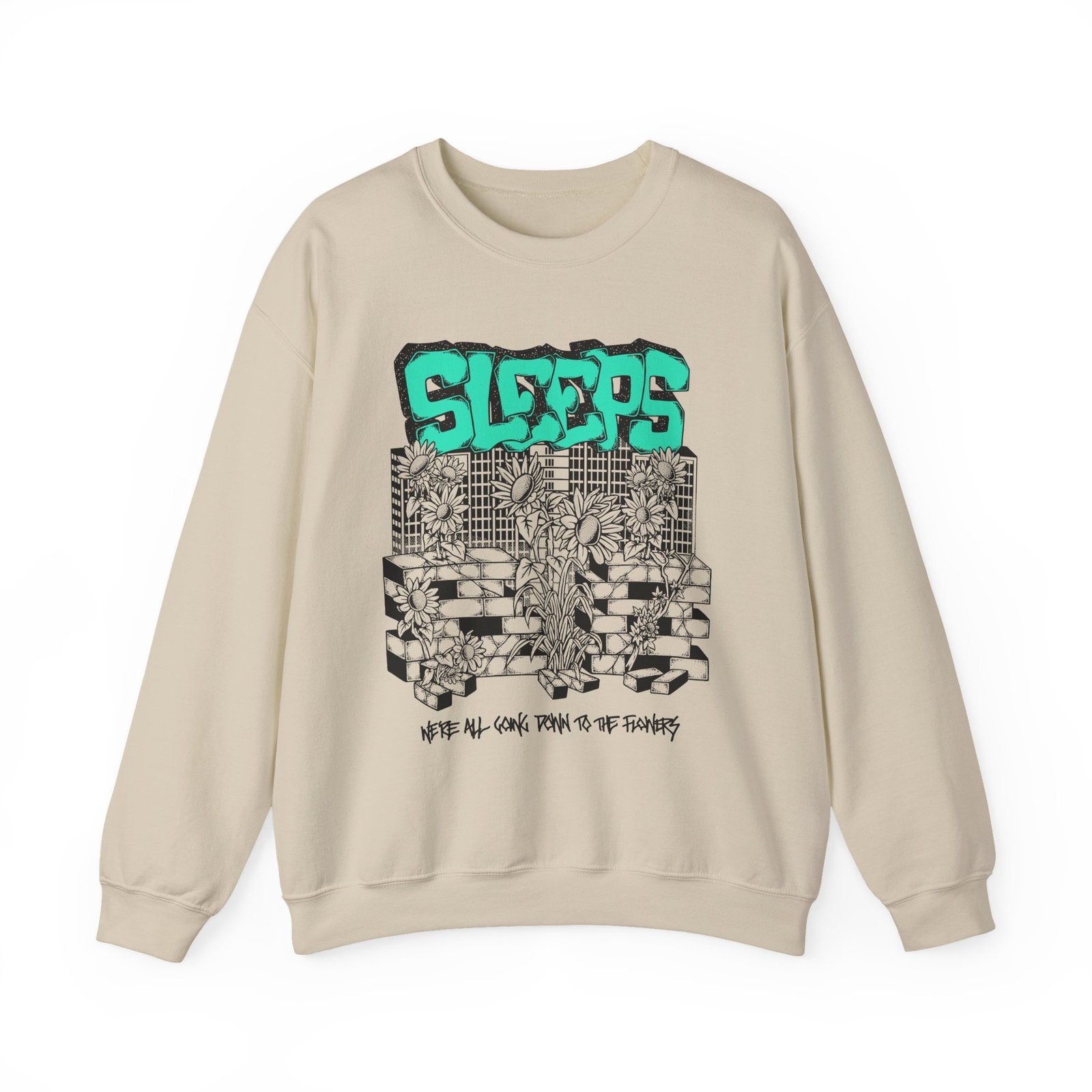 Ideal for any situation, a While She Sleeps Sleeps City unisex heavy blend crewneck sweatshirt is pure comfort. These garments are made from polyester and cotton. This combination helps designs come out looking fresh and beautiful. The collar is ribbed knit, so it retains its shape even after washing. There are no itchy side seams on these sweaters.