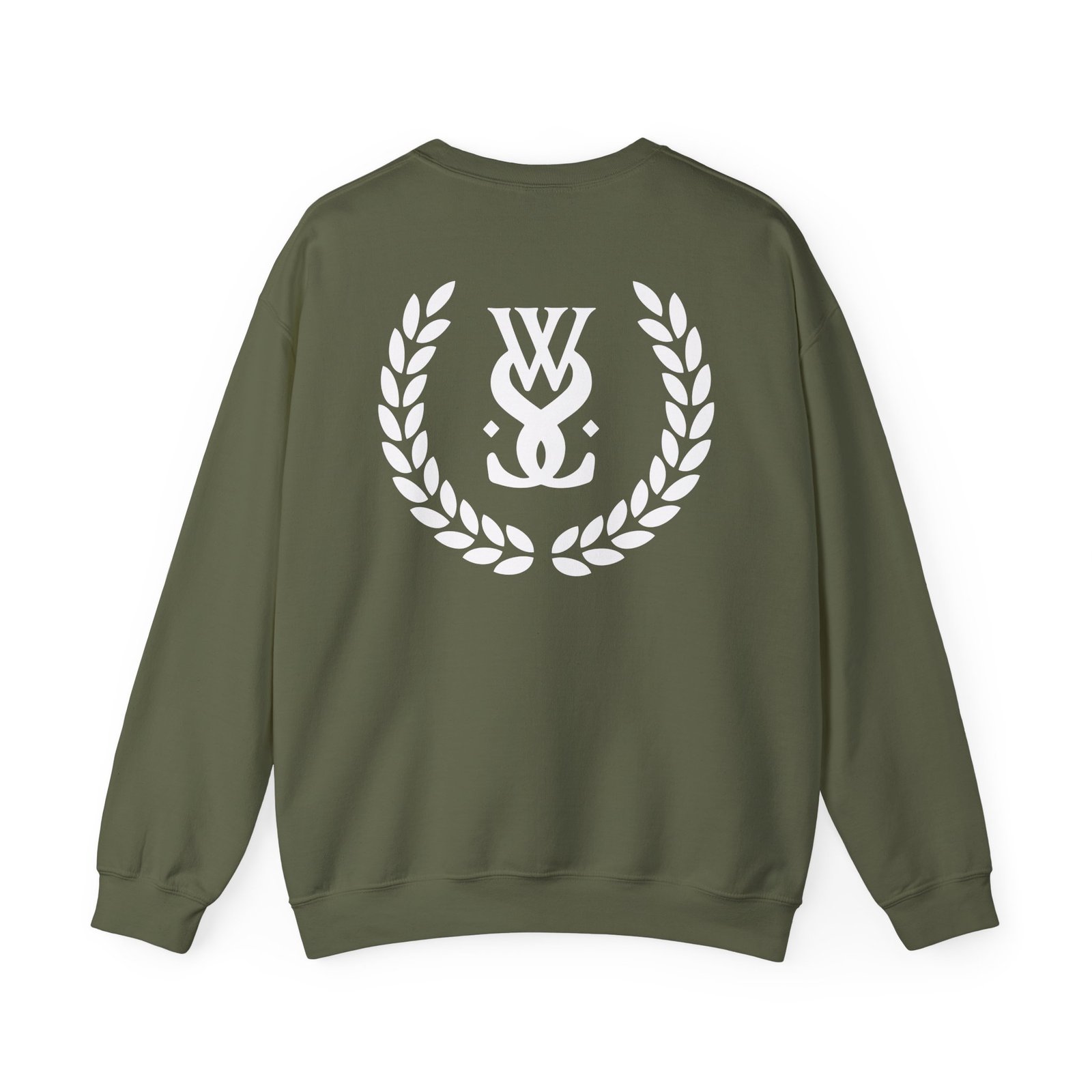 Ideal for any situation, a While She Sleeps Wreath Service unisex heavy blend crewneck sweatshirt is pure comfort. These garments are made from polyester and cotton. This combination helps designs come out looking fresh and beautiful. The collar is ribbed knit, so it retains its shape even after washing. There are no itchy side seams on these sweaters.