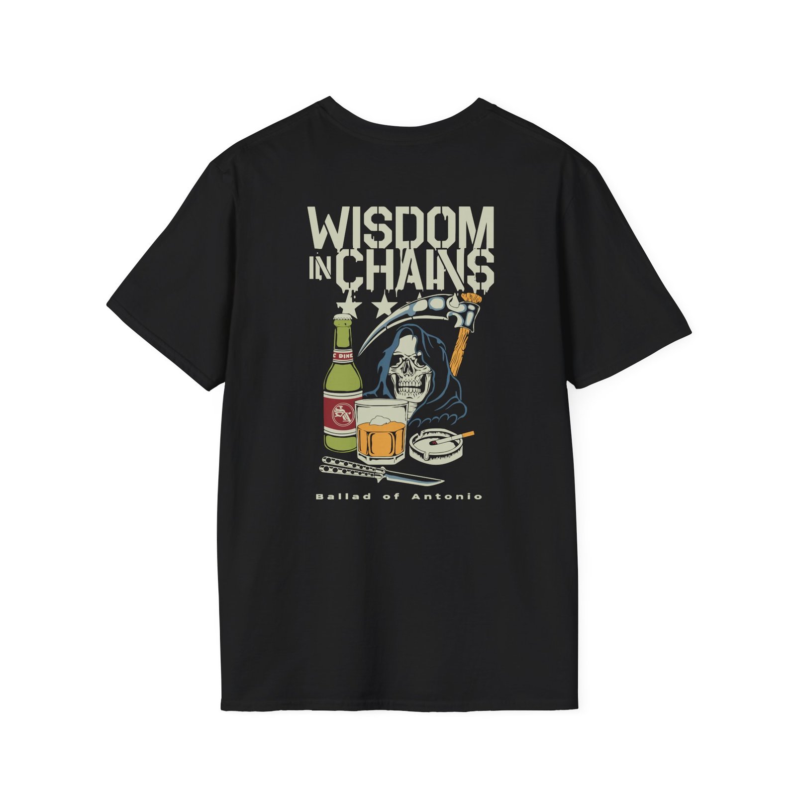 The Wisdom in Chains Evergreen Terrace unisex soft-style t-shirt puts a new spin on casual comfort. Made from very soft materials, this tee is 100% cotton for solid colors. Heather colors and sports grey include polyester. The shoulders have twill tape for improved durability. There are no side seams. The collar is made with ribbed knitting to prevent curling damage.