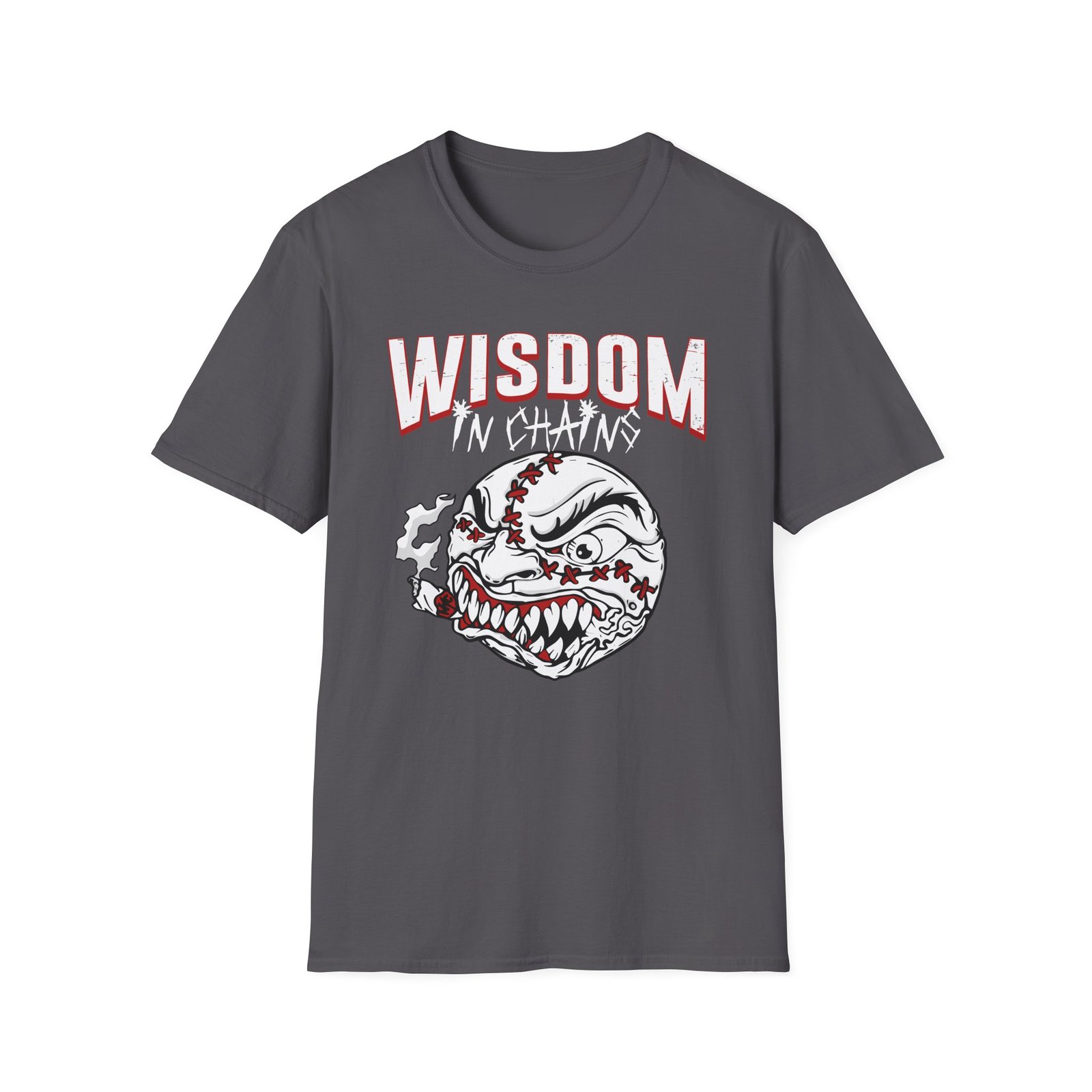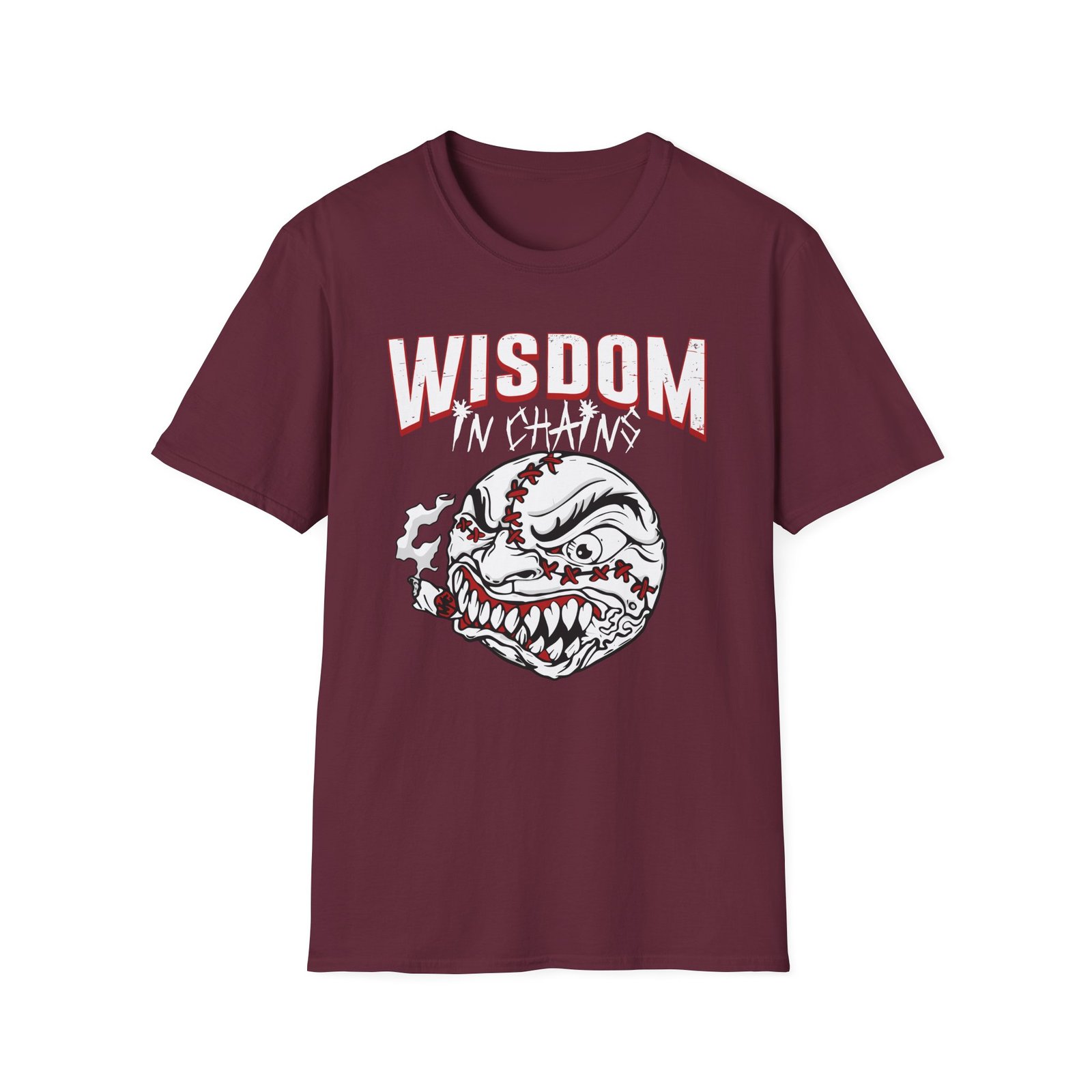 The Wisdom in Chains Madball unisex soft-style t-shirt puts a new spin on casual comfort. Made from very soft materials, this tee is 100% cotton for solid colors. Heather colors and sports grey include polyester. The shoulders have twill tape for improved durability. There are no side seams. The collar is made with ribbed knitting to prevent curling damage.
