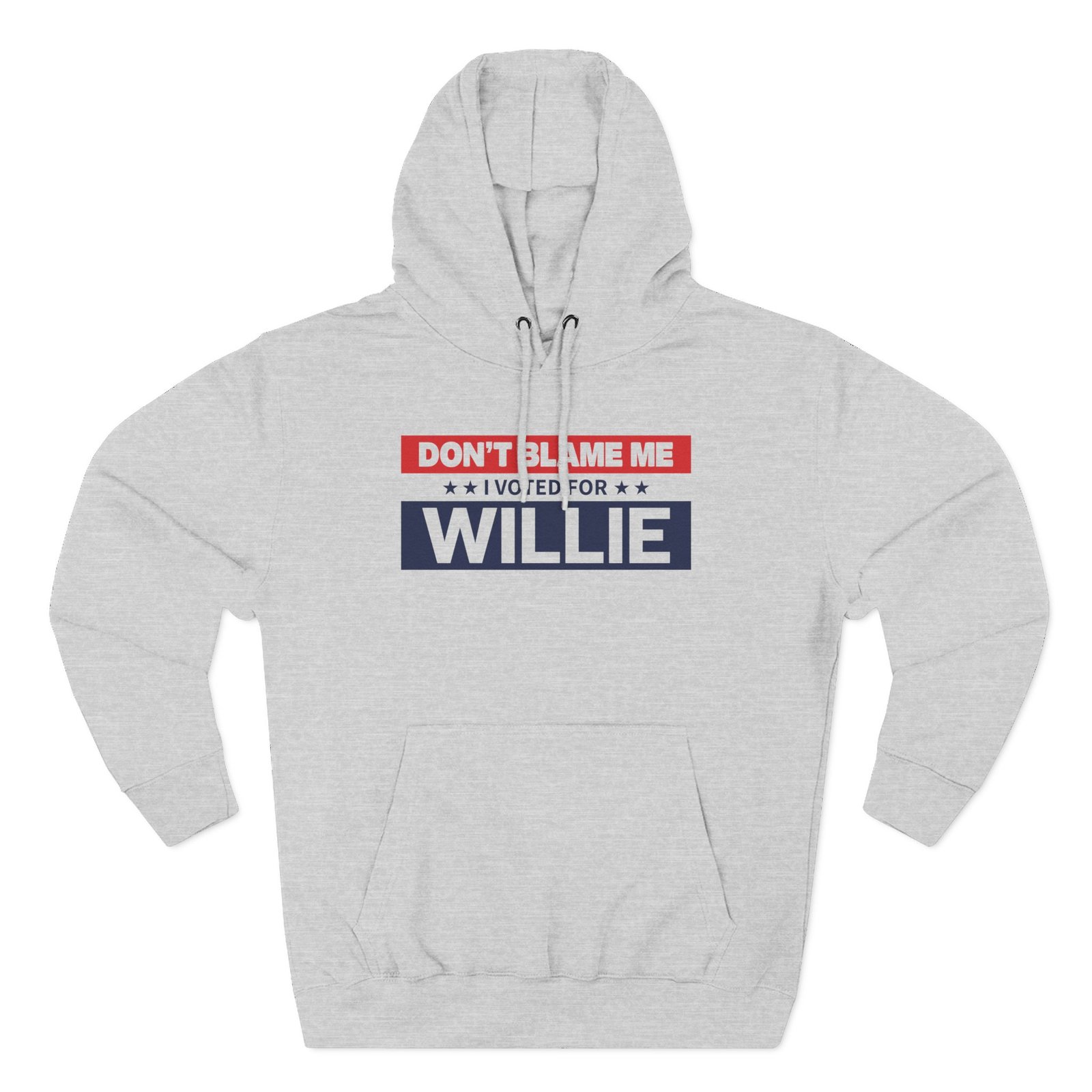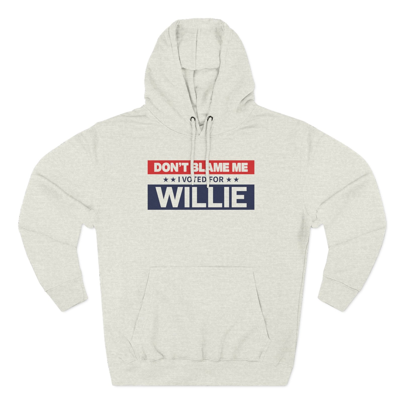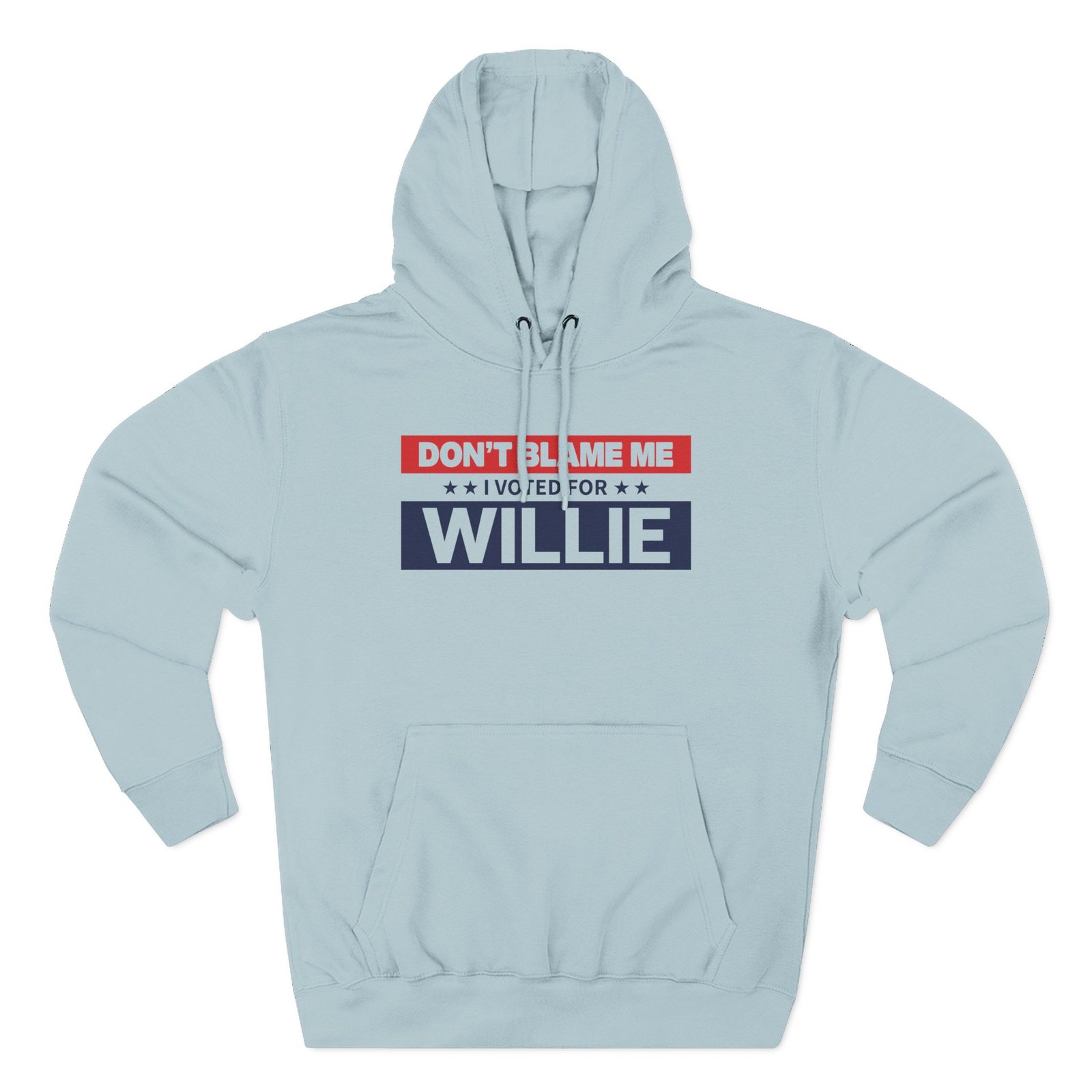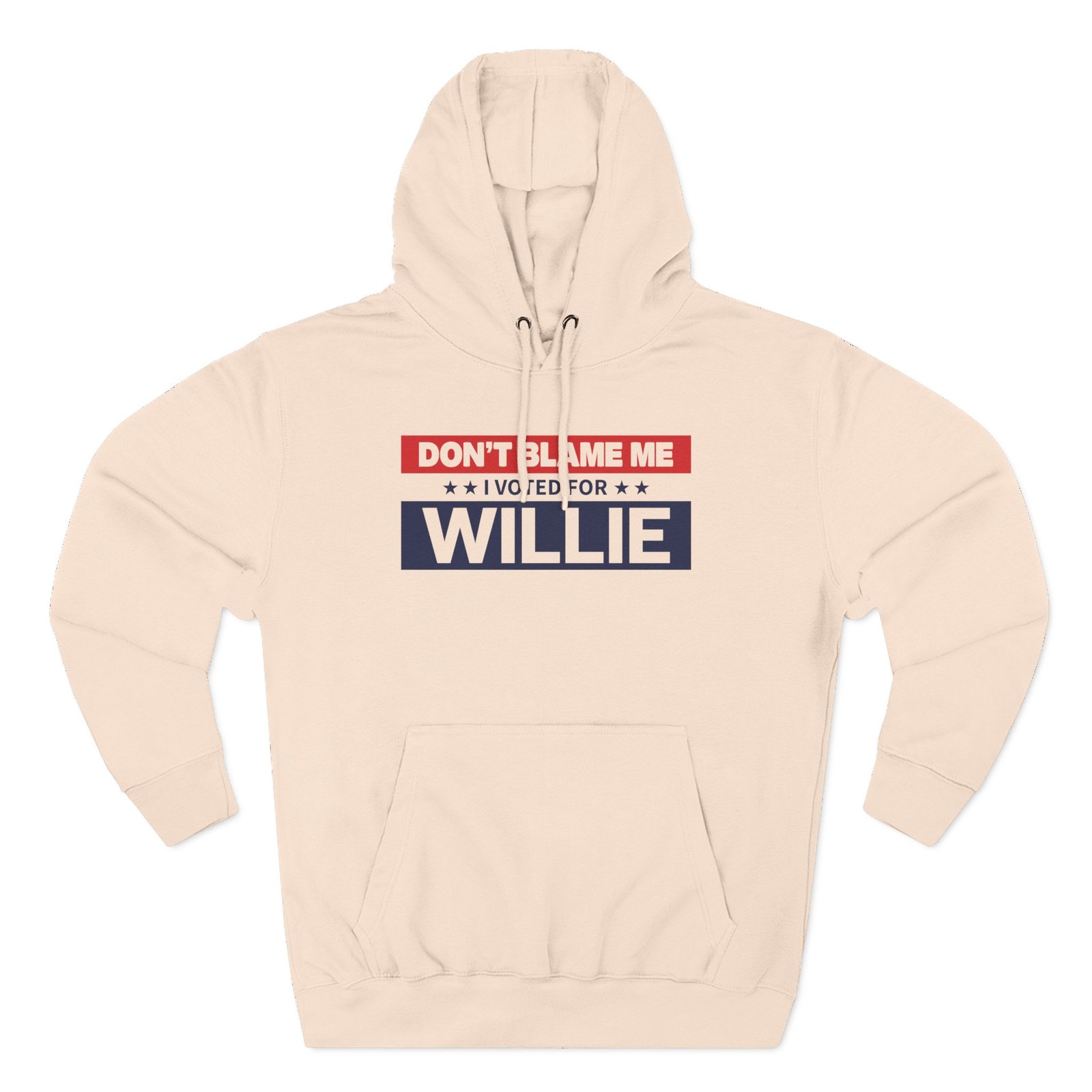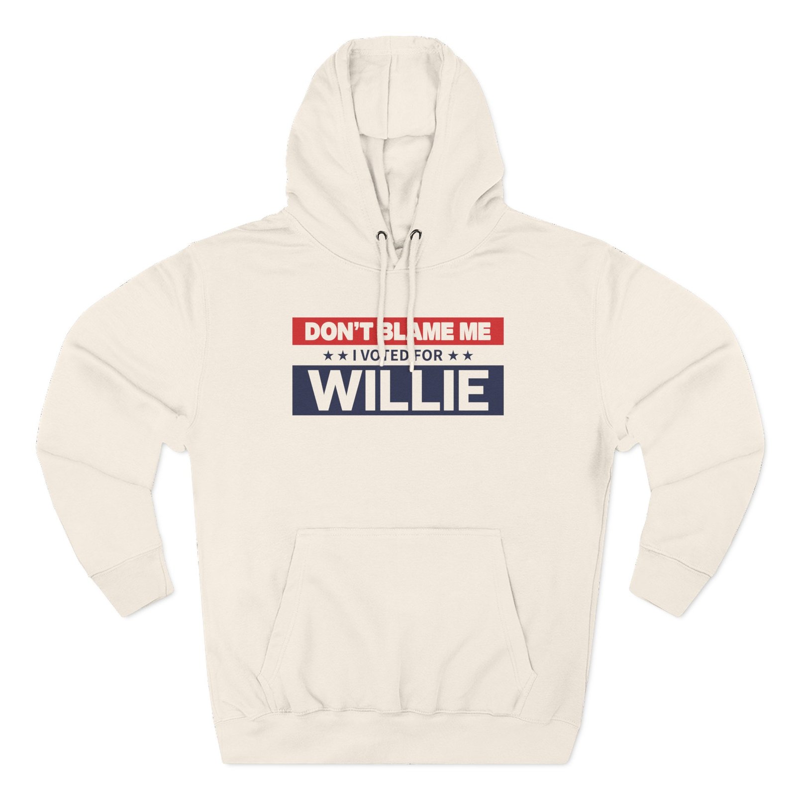 Beat the cold with this WNS I Voted for Willie premium pullover hoodie that’s just the right layer of warm and cozy. Made with three-panel fleece lining, this pullover is double stitched for durability and roomy. Pick one in your favorite color to match your style.