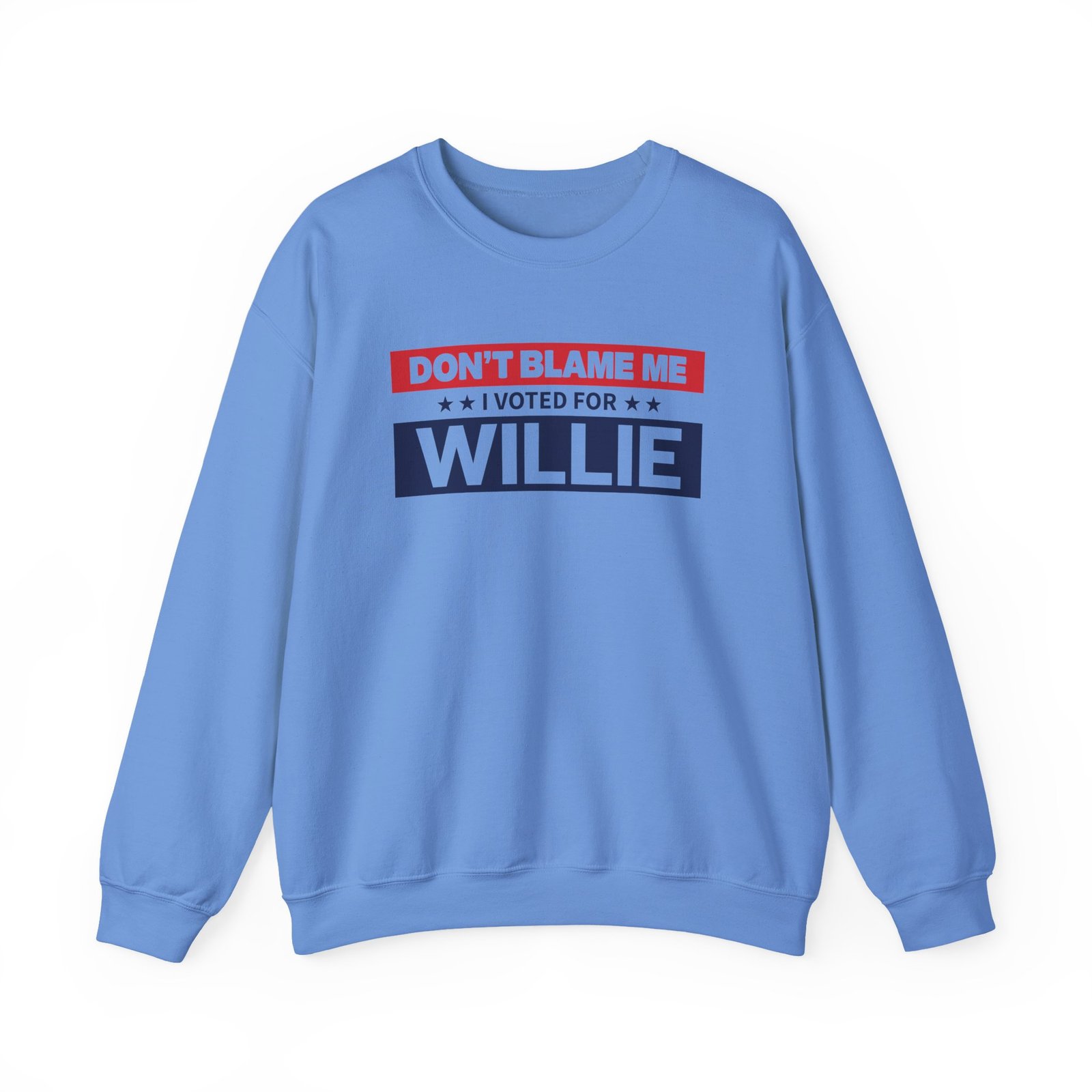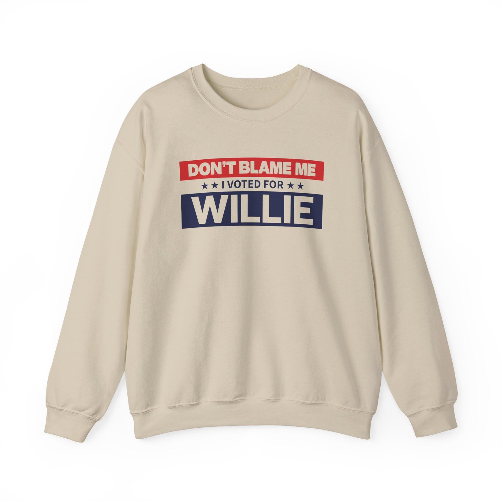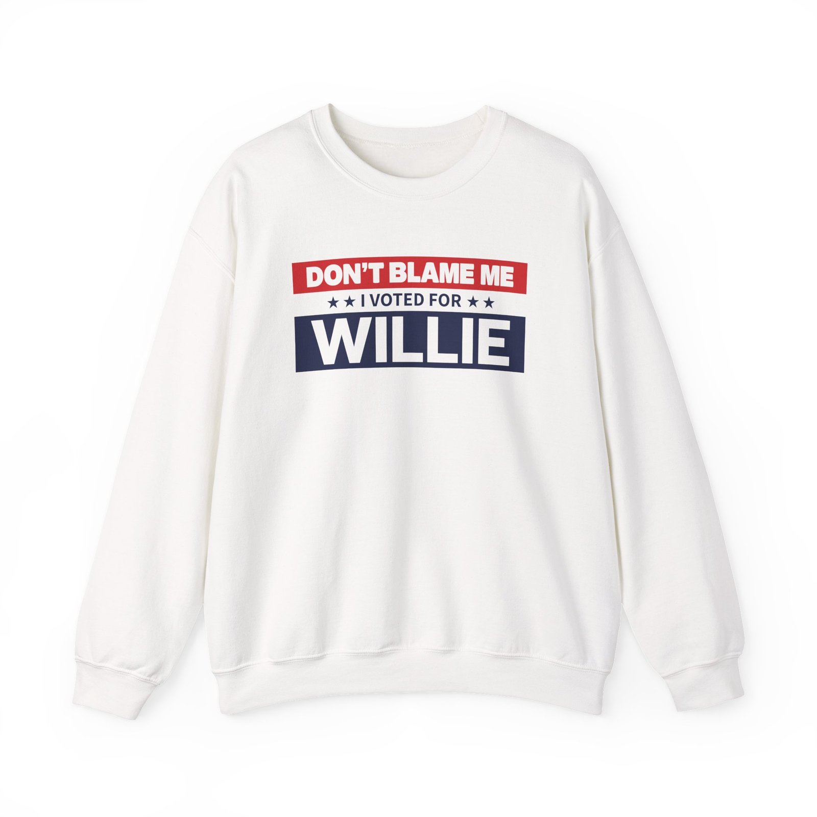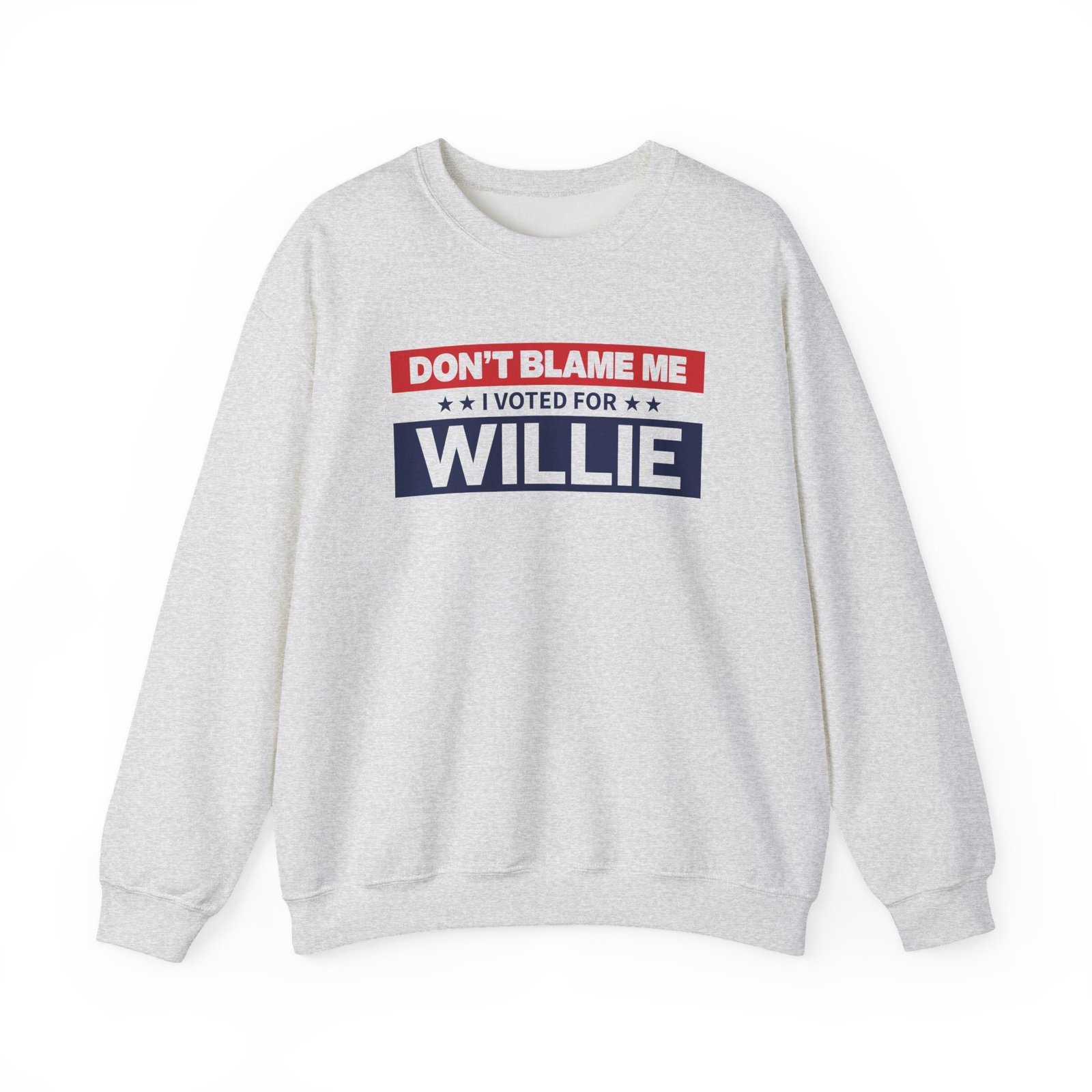 Ideal for any situation, a WNS I Voted for Willie unisex heavy blend crewneck sweatshirt is pure comfort. These garments are made from polyester and cotton. This combination helps designs come out looking fresh and beautiful. The collar is ribbed knit, so it retains its shape even after washing. There are no itchy side seams on these sweaters.