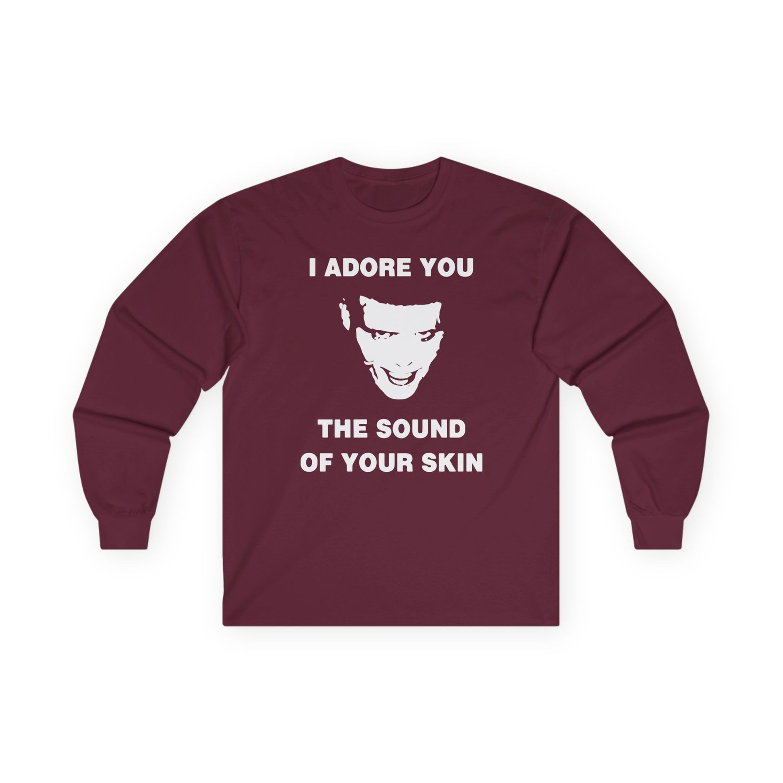 A bit more formal than a standard-issue t-shirt, the Yung Lean I Adore You the Sound of Your Skin ultra cotton long sleeve tee is a clear comfort winner. The sleeves also act as a nice frame. There are no side seams. The shoulders are taped for improved durability. This makes for a good fitting around the shoulders and neck. The cotton used for these shirts is environmentally friendly.